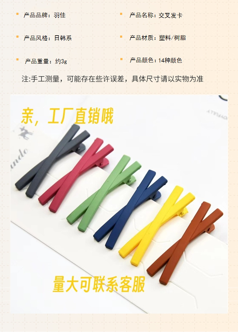 日韩简约发夹甜美少女心糖果色边夹刘海夹一字夹磨砂交叉发卡发饰