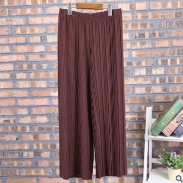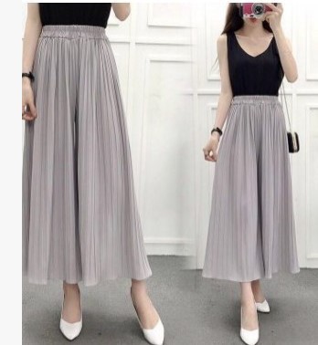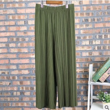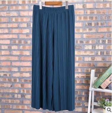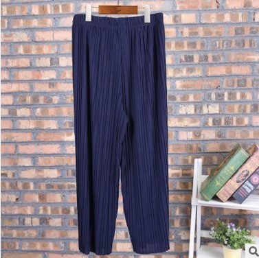 夏季女士大码休闲裤雪纺阔腿裤高腰宽松百褶裤新款阔腿裤九分裤