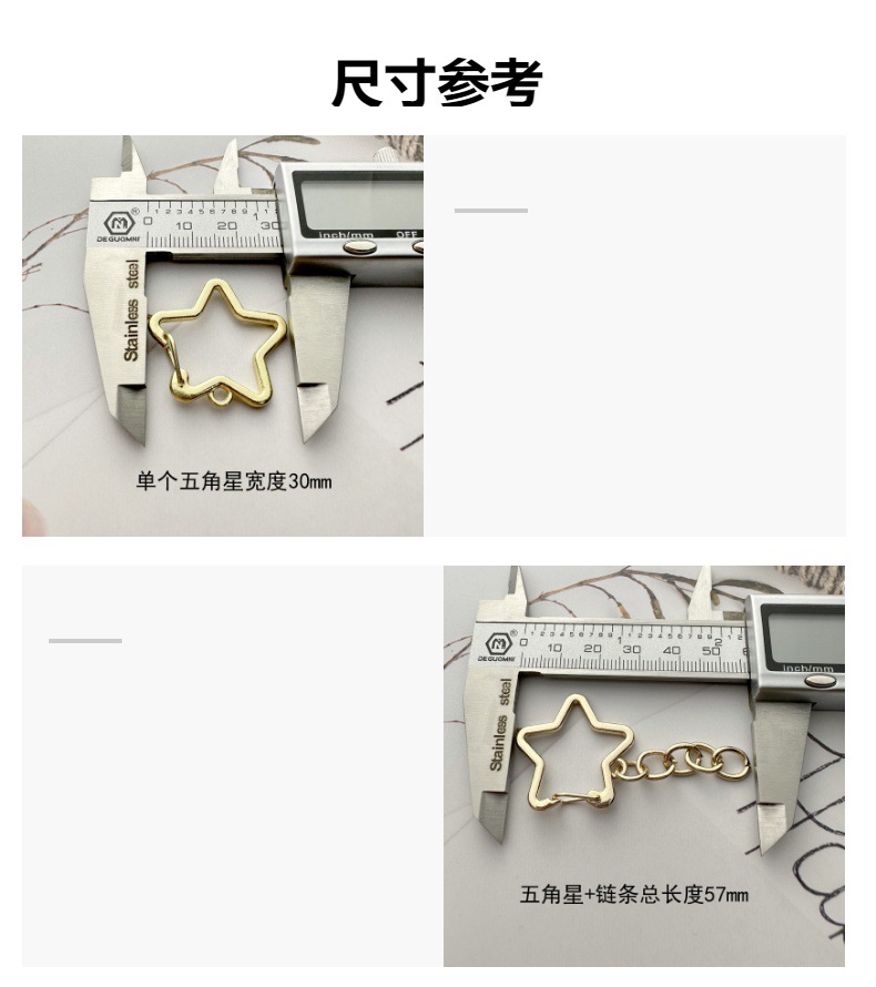 五角星30mm配8字链条 锌合金电镀保色工艺 公仔亚克力毛绒挂件配