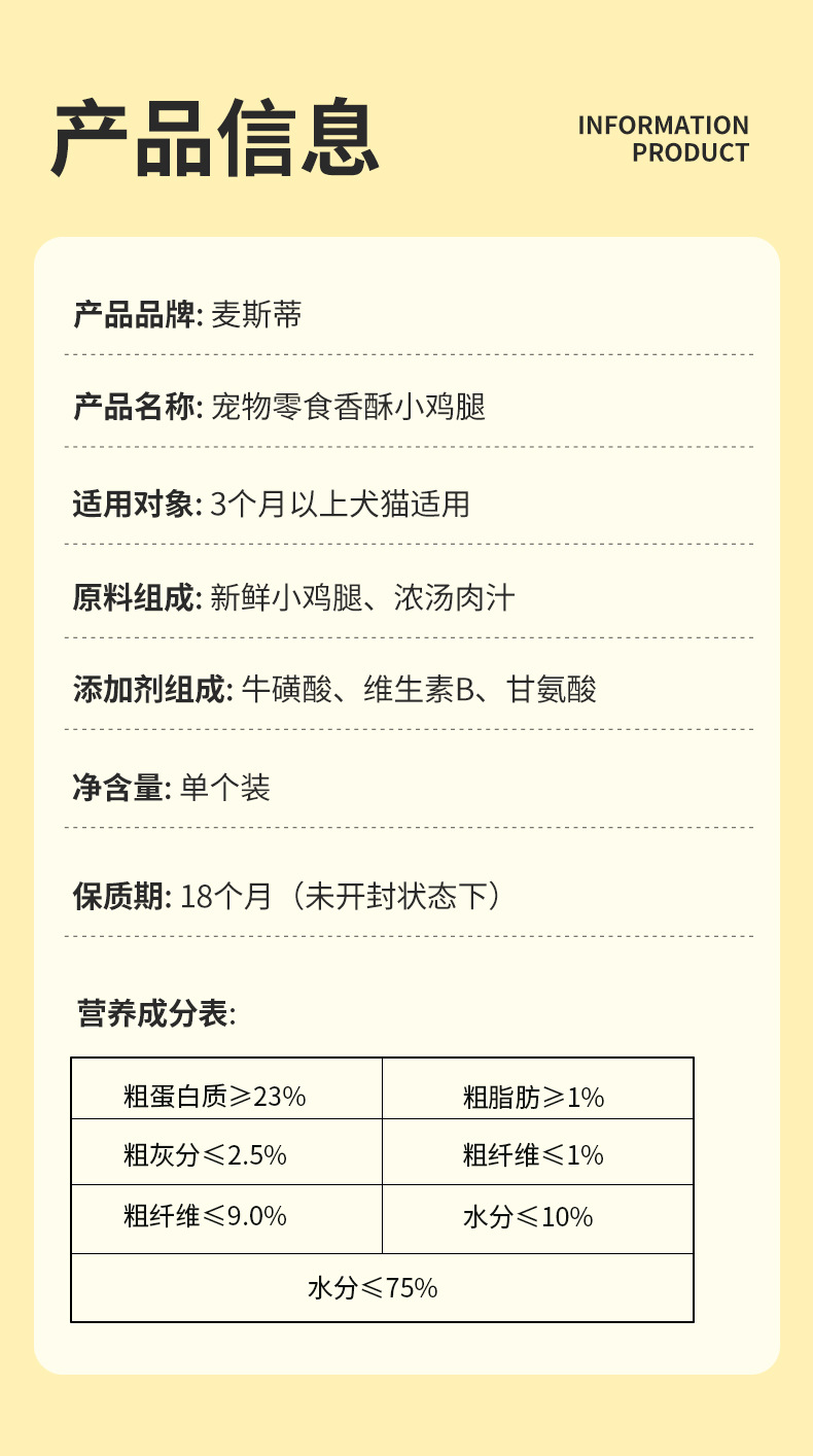 麦斯蒂鲜嫩酥骨鸡腿猫咪零食香酥营养解馋拌饭狗狗零食犬猫通用