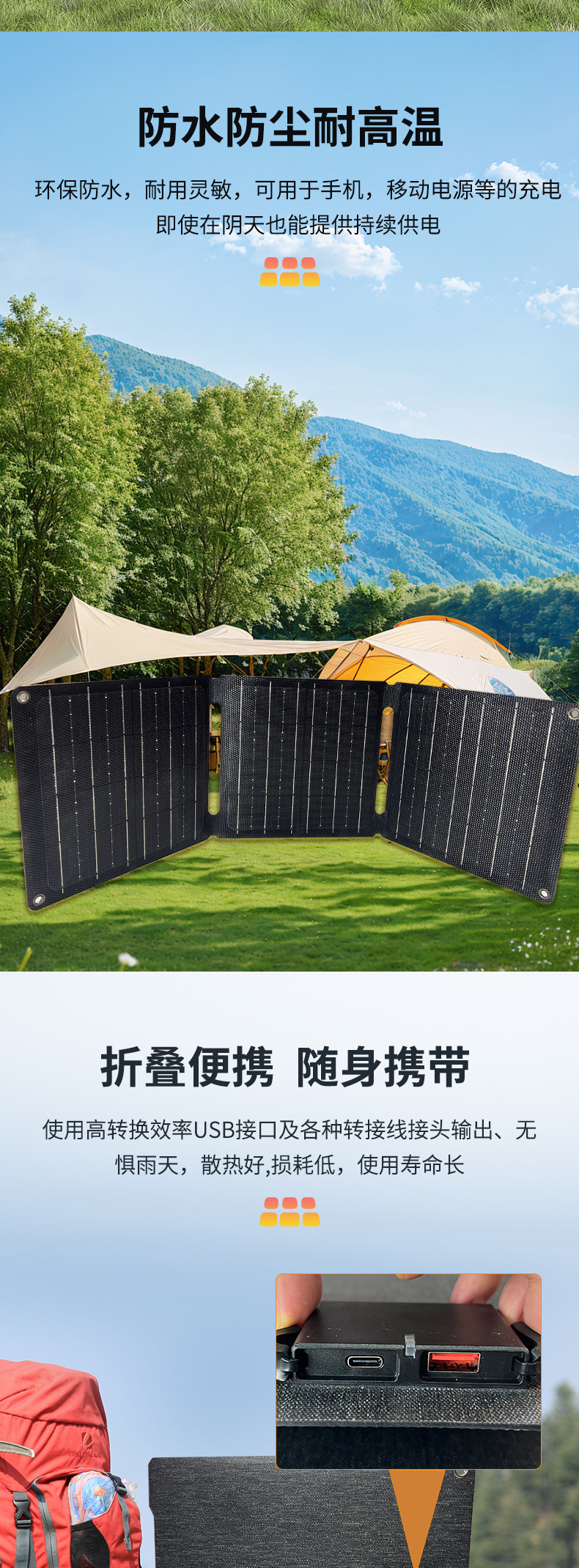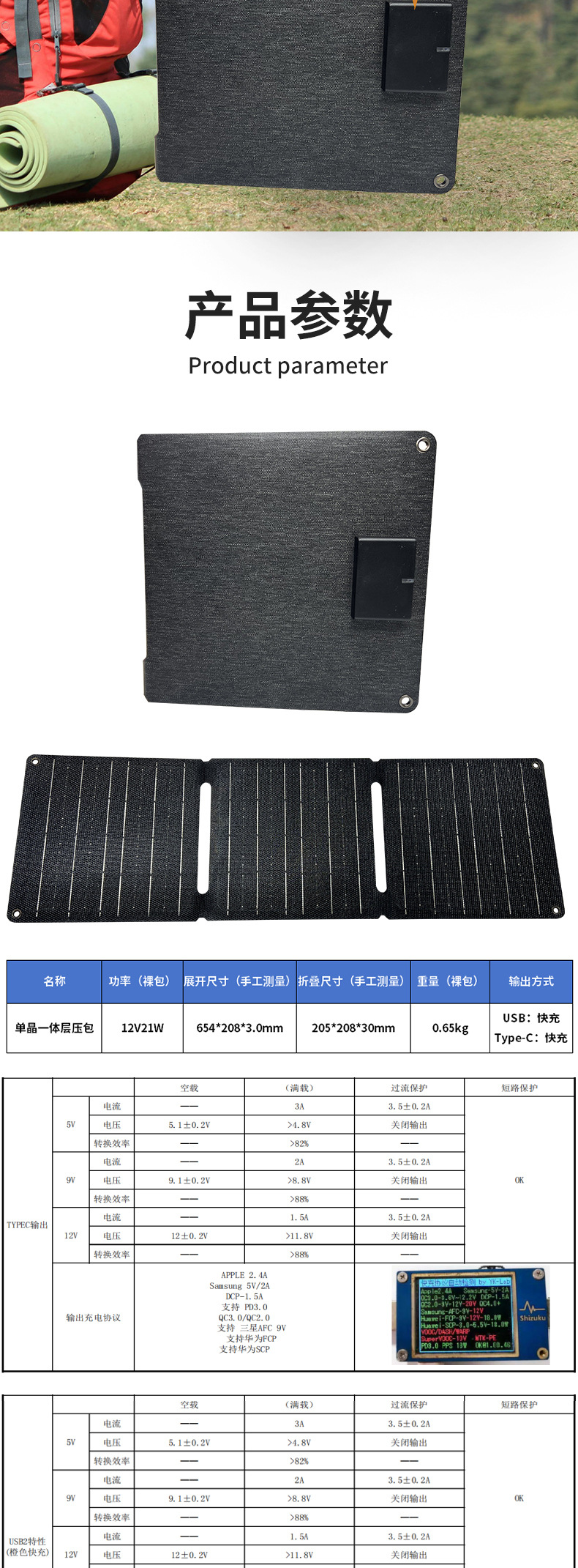 21W太阳能折叠包便携式太阳能光伏板充电器 12V户外太阳能电池板