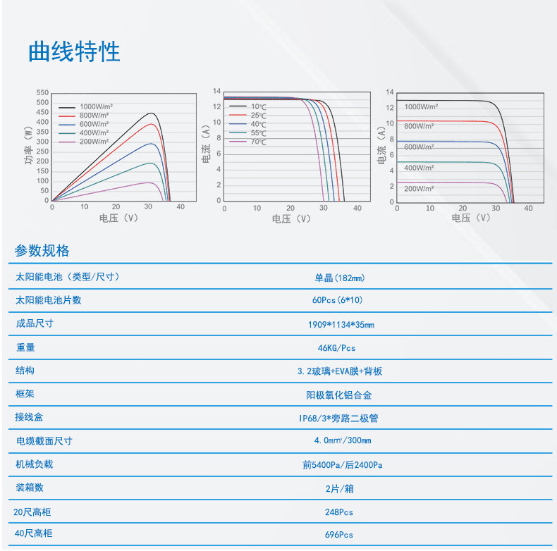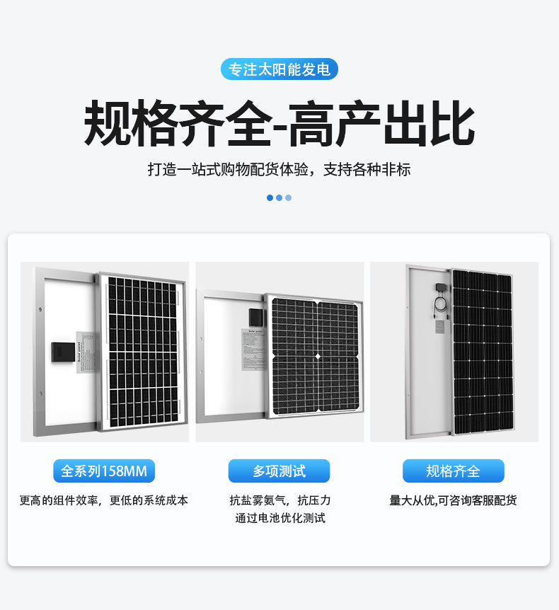 182单晶硅10W-450W太阳能光伏板电池板光伏组件高效太阳能发电板