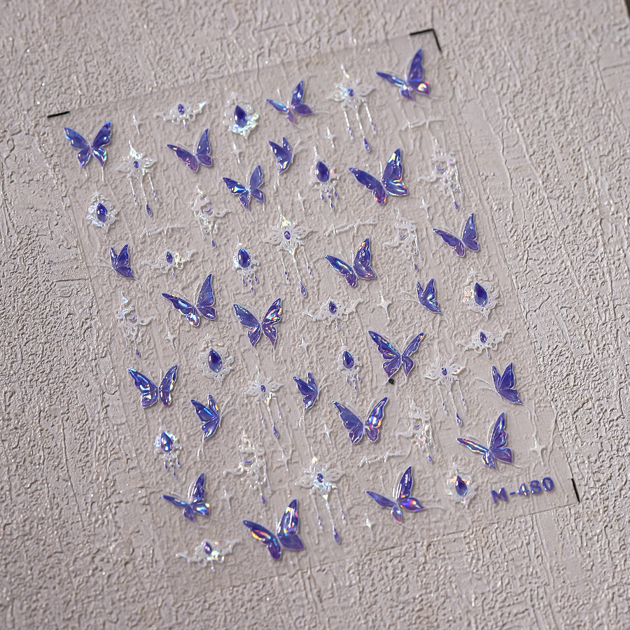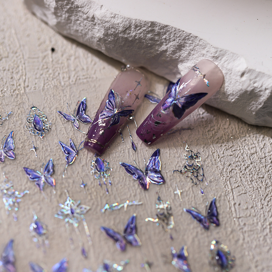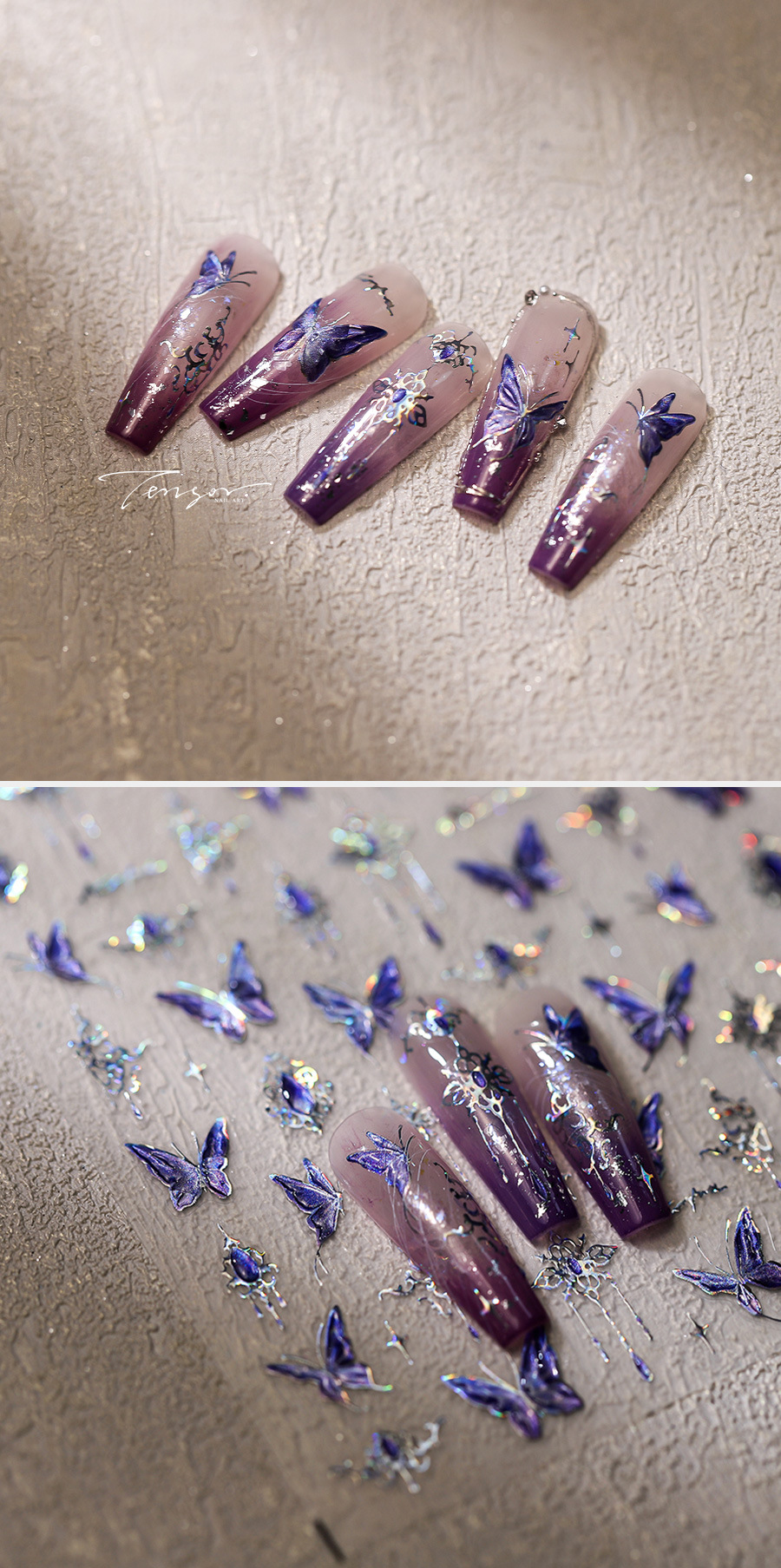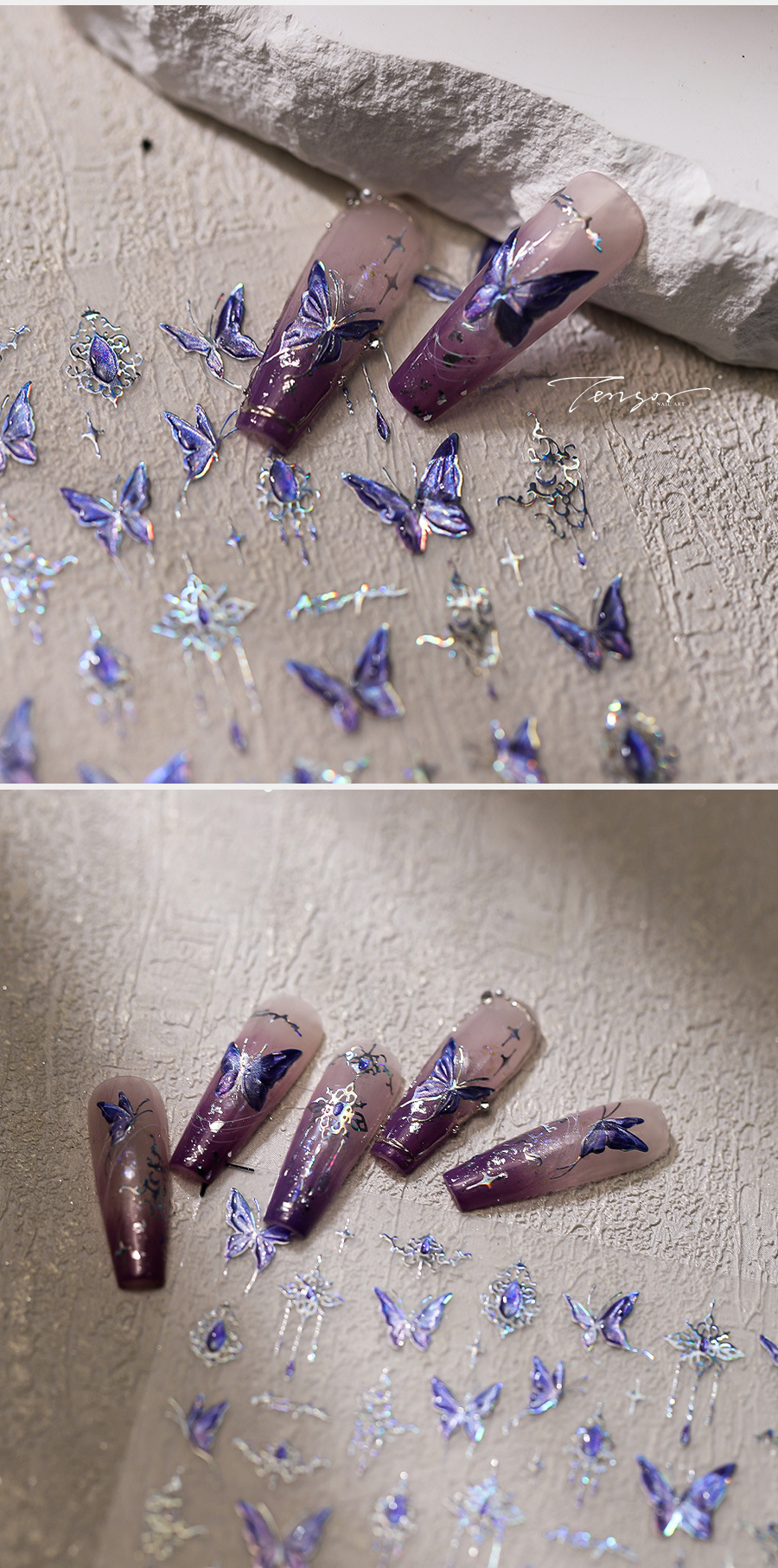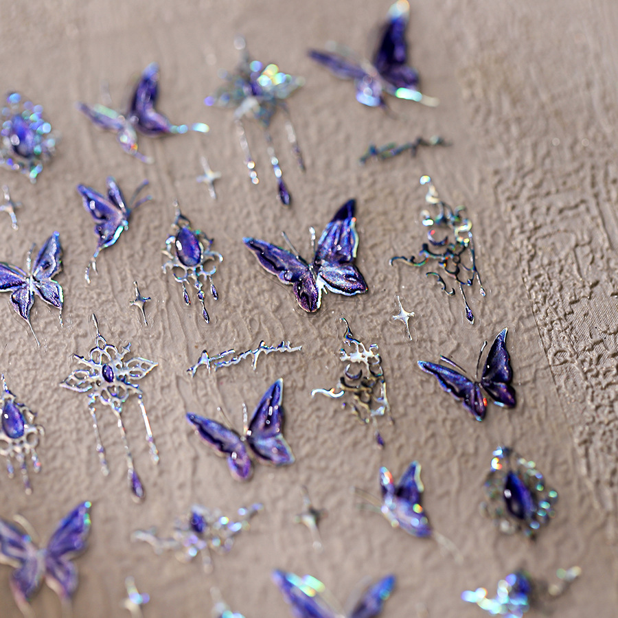 烫金美甲贴纸紫韵蝴蝶背胶美甲贴立体烫金系列美甲贴纸