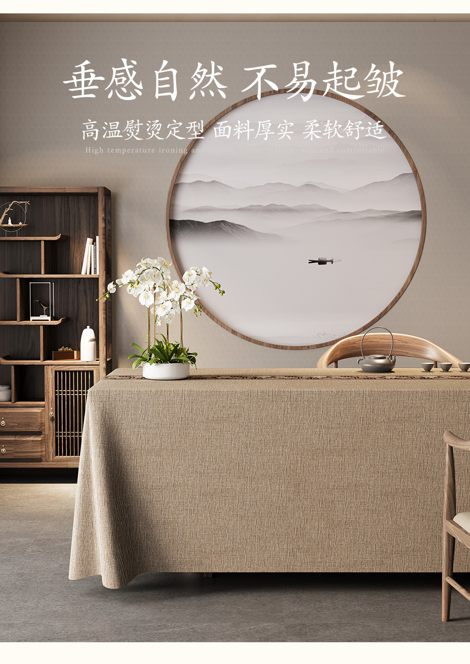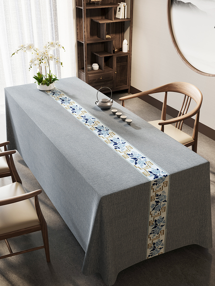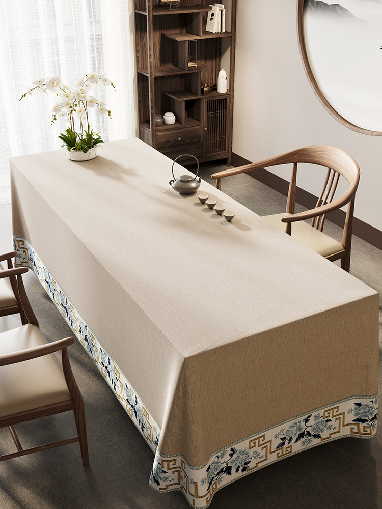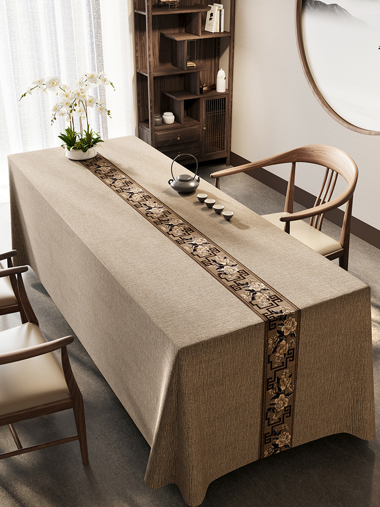 中式桌布棉麻布艺轻奢高级感防水台书法复古风桌旗茶室禅意茶桌布