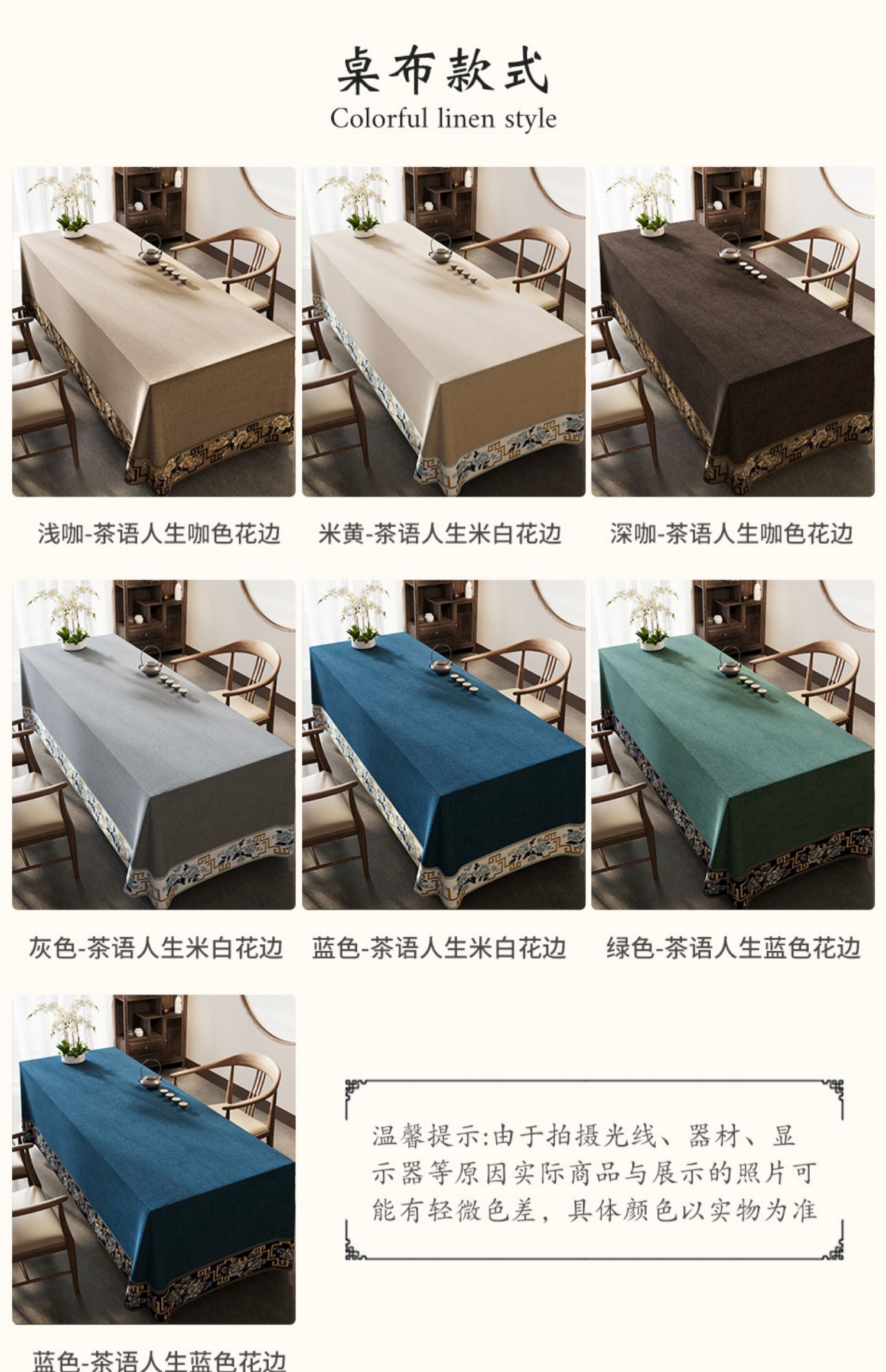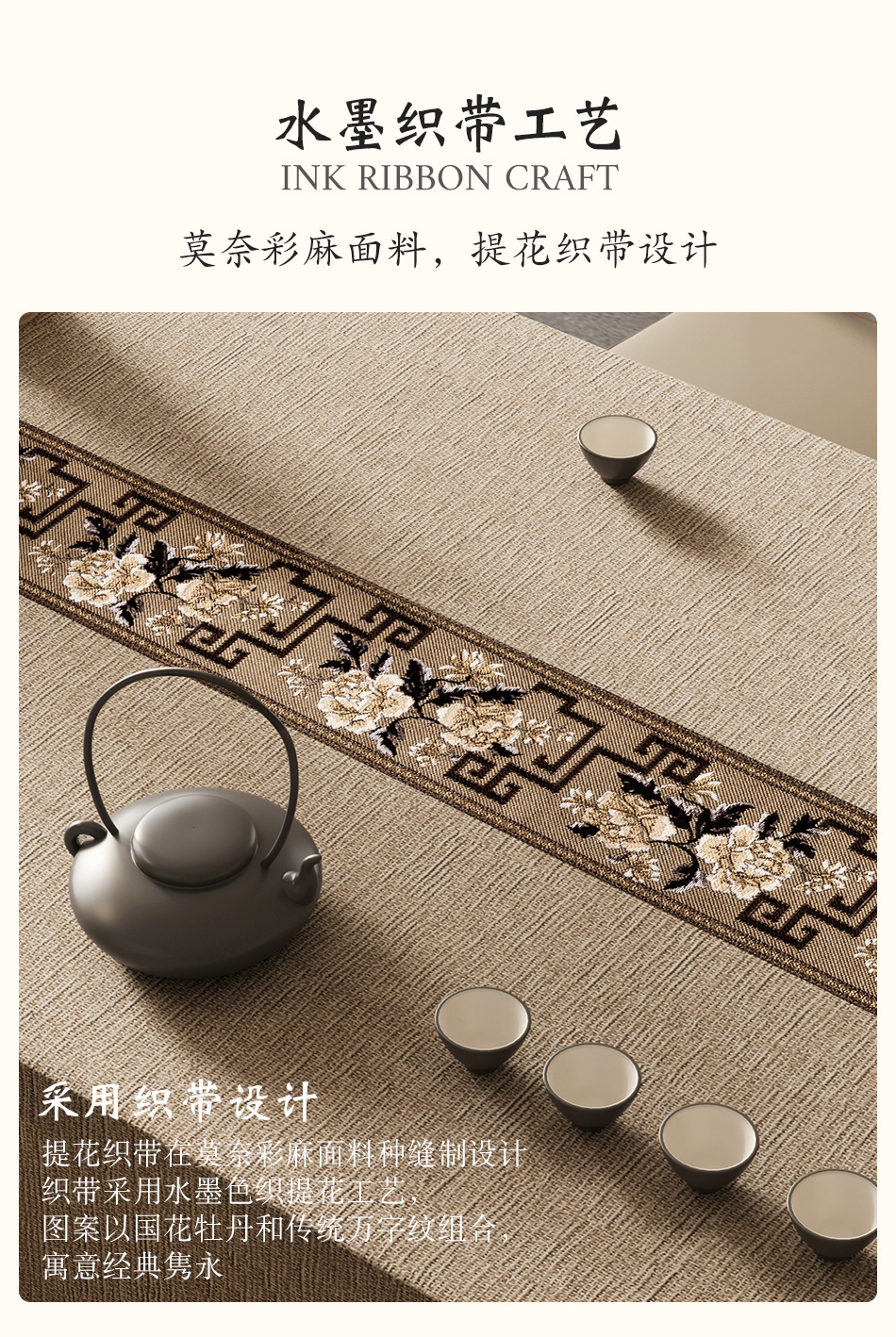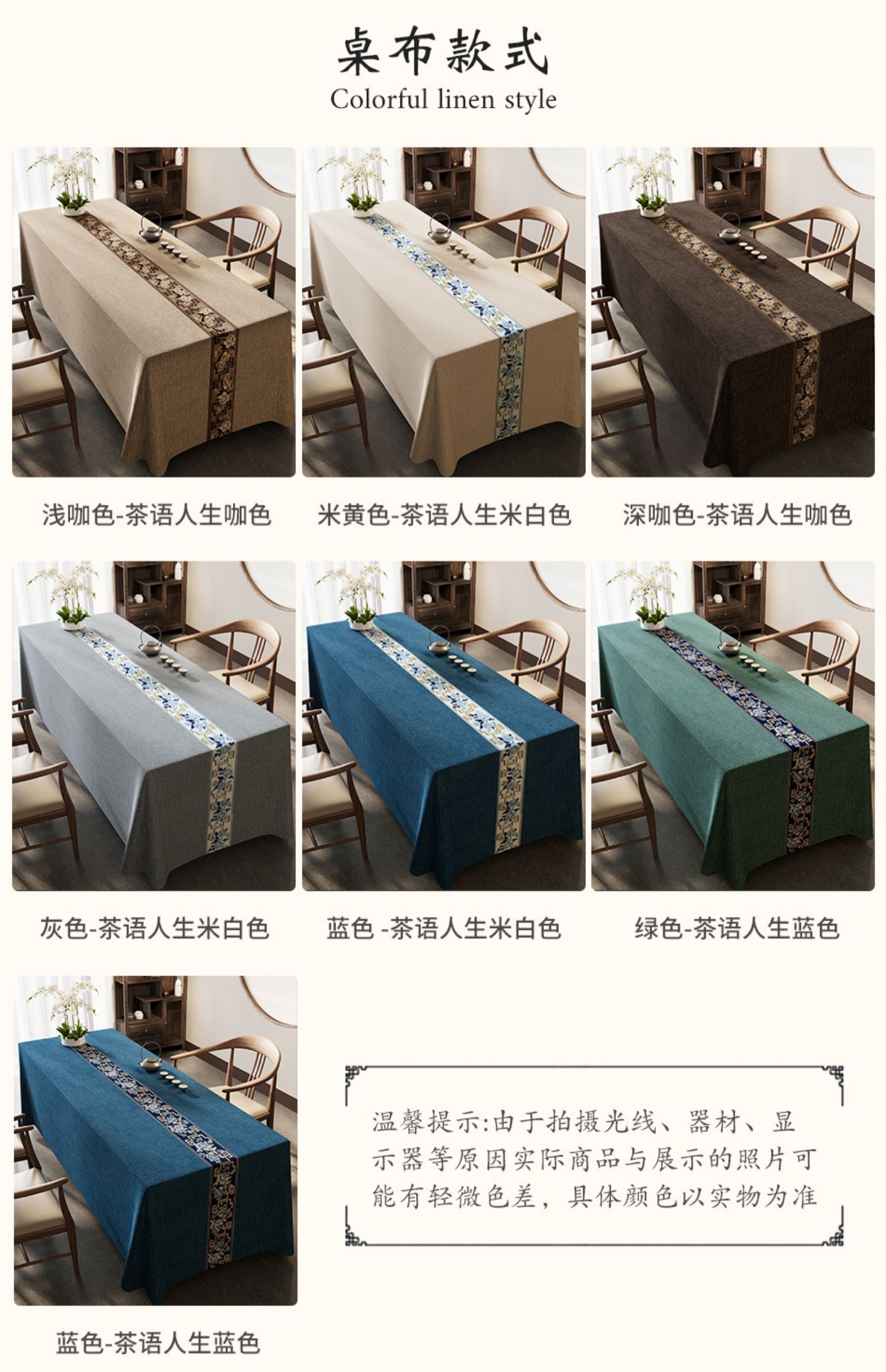 中式桌布棉麻布艺轻奢高级感防水台书法复古风桌旗茶室禅意茶桌布