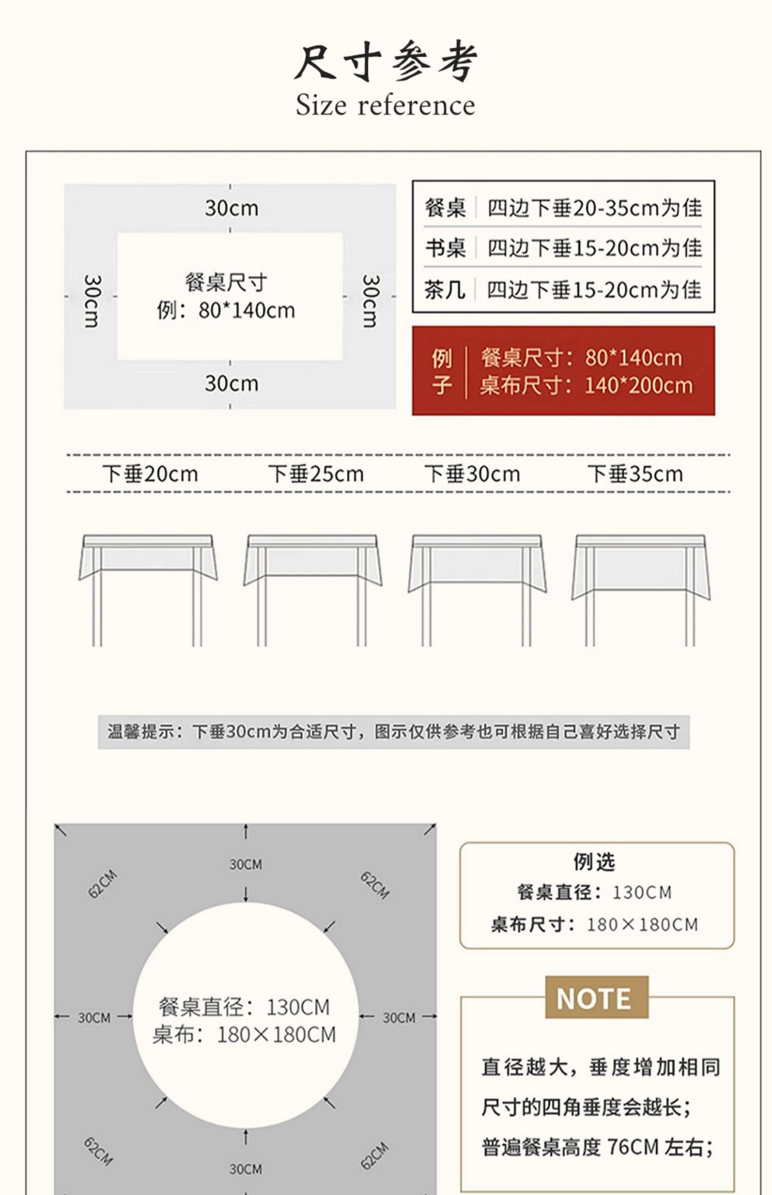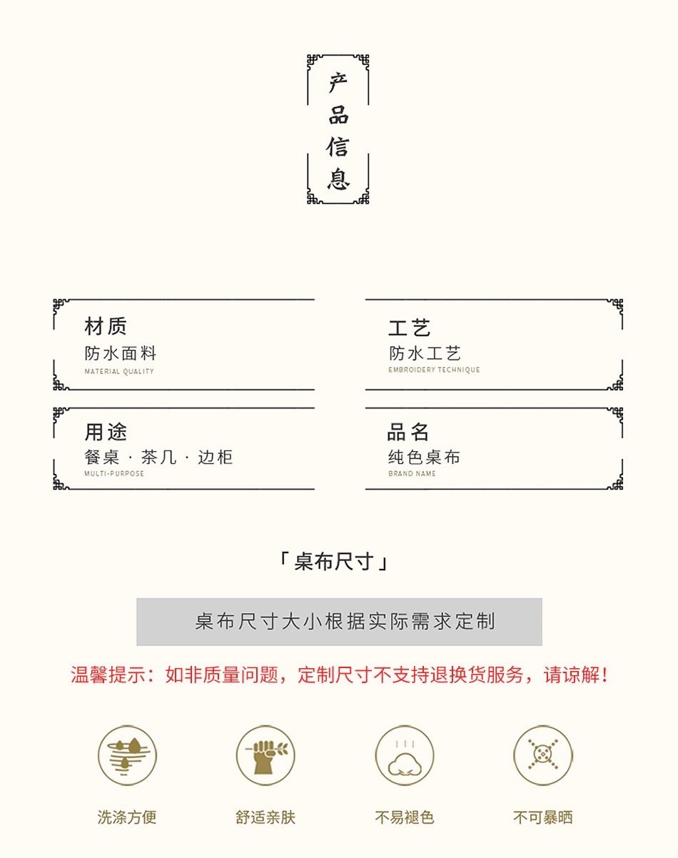 | 130 * 180cm [suitable for 80% household dining table]](130*180cm【适合80%家用餐桌】) | USD $31.32 | 200 piece available |