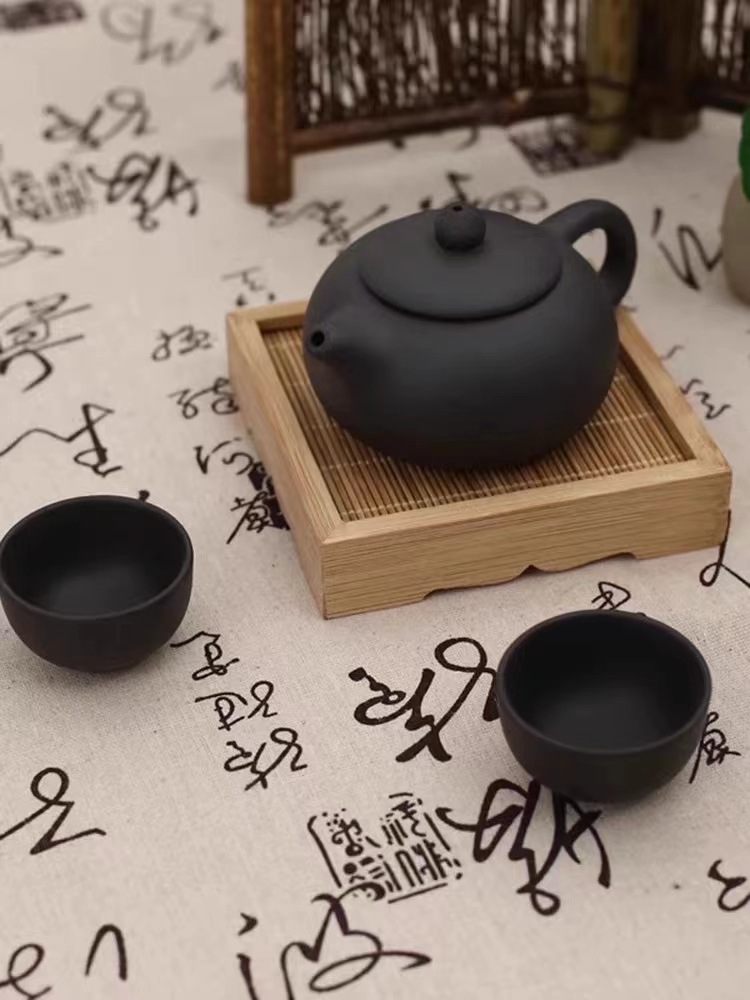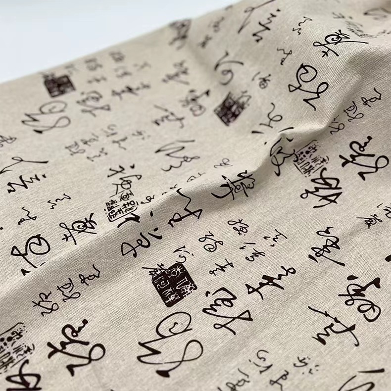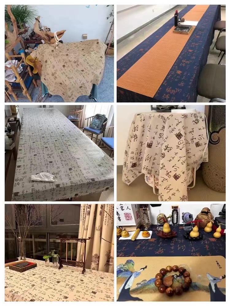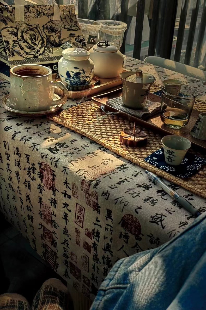 棉麻书法桌布瘦金体书法桌布 国风毛笔印染桌布复古茶几布垫桌布