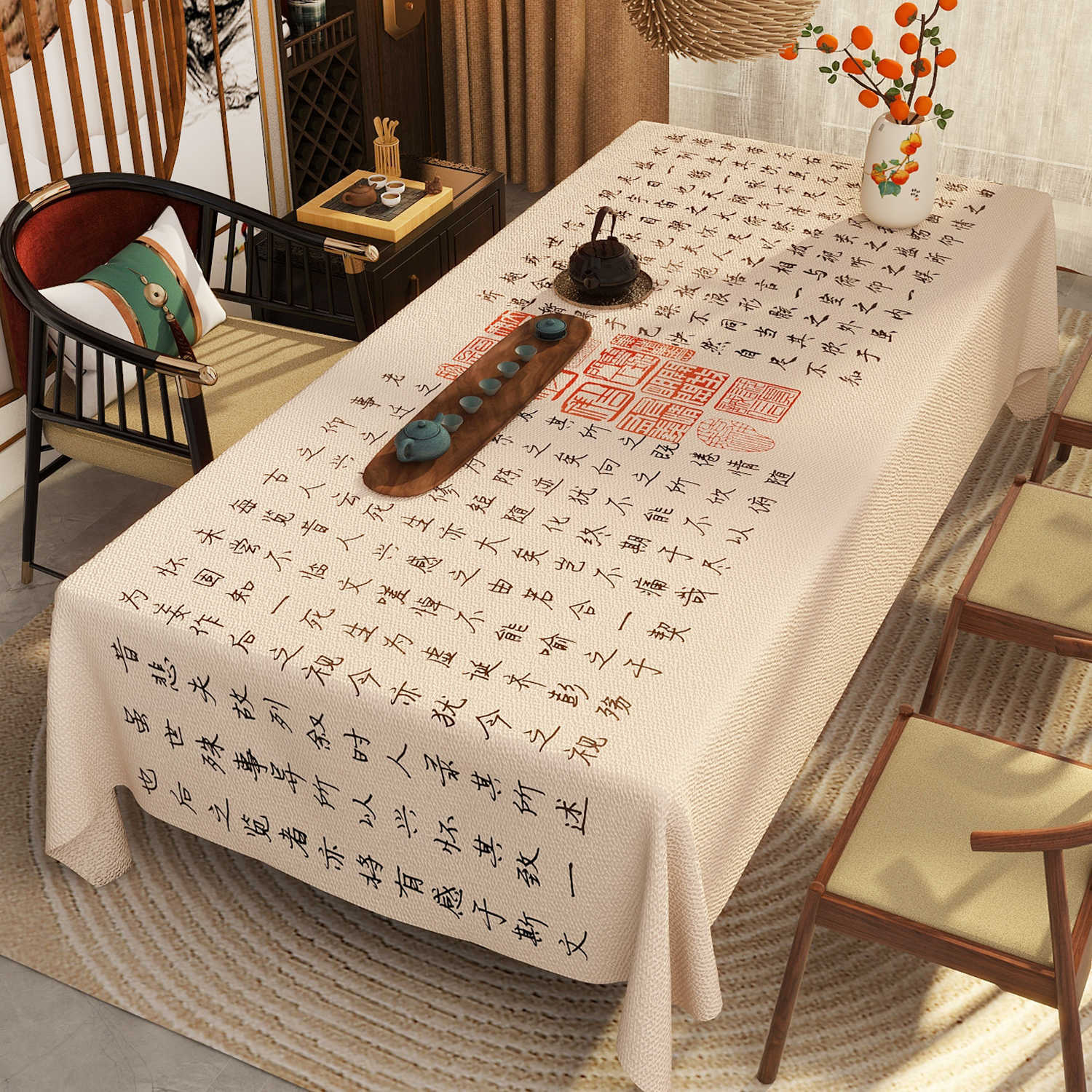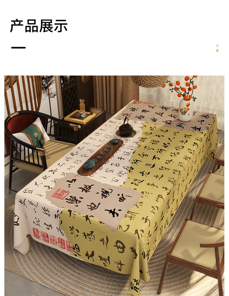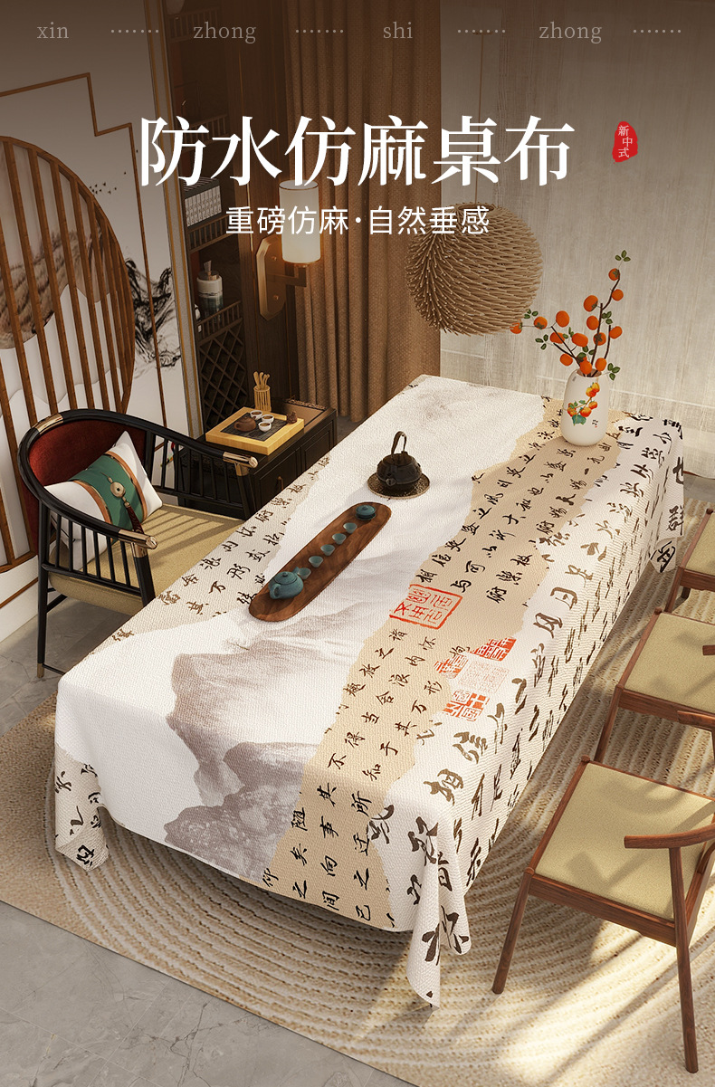 新中式古典中国风苏轼书法仿麻桌布防水防油免洗餐桌客厅茶几桌布