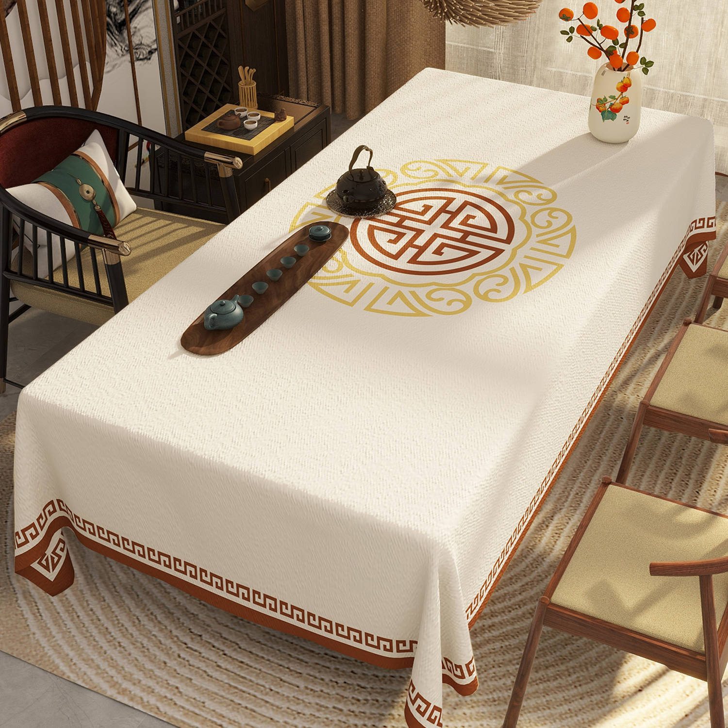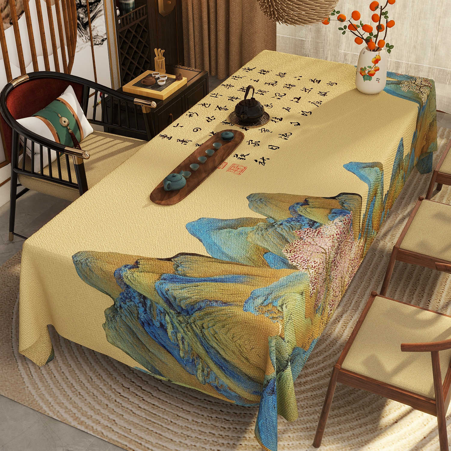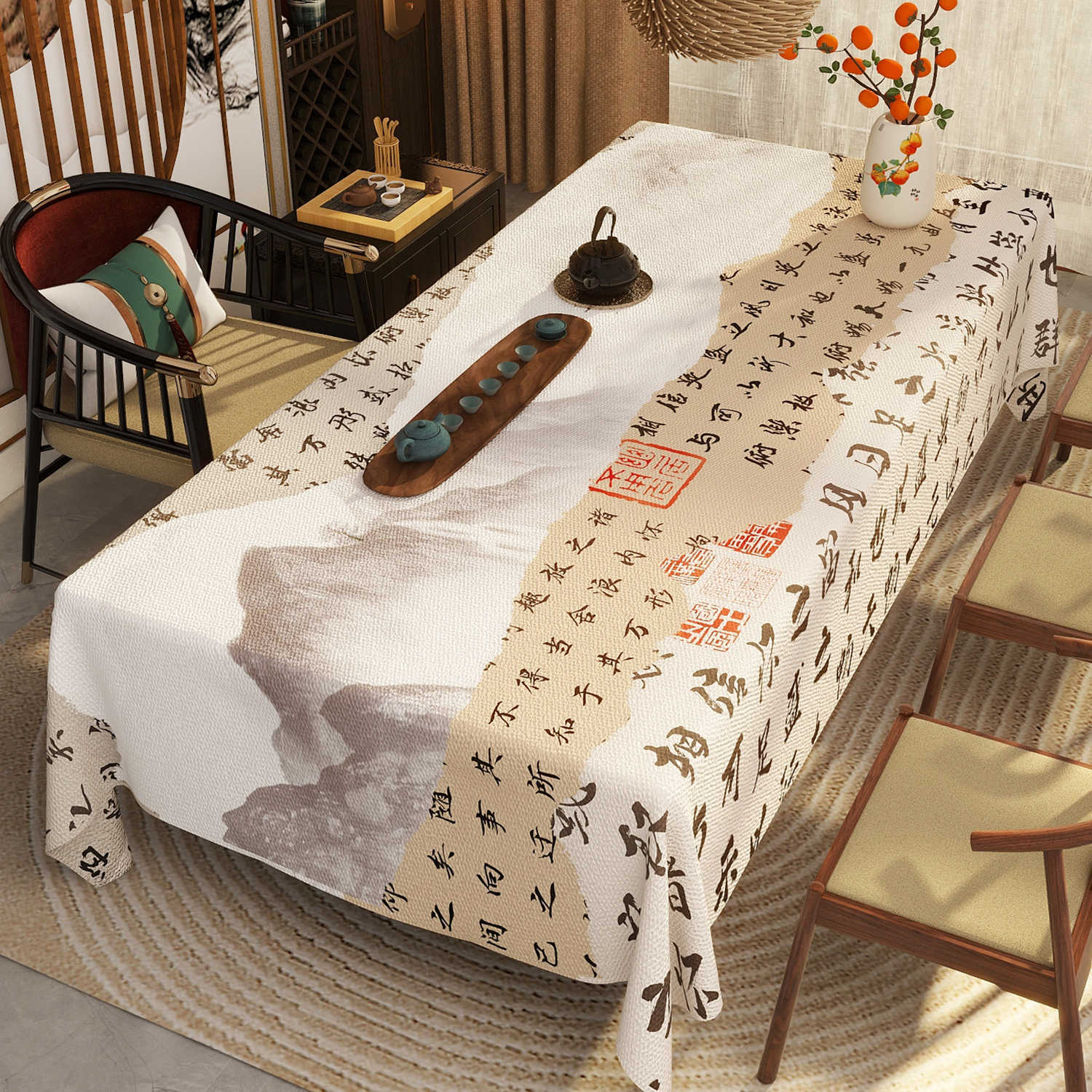 新中式古典中国风苏轼书法仿麻桌布防水防油免洗餐桌客厅茶几桌布