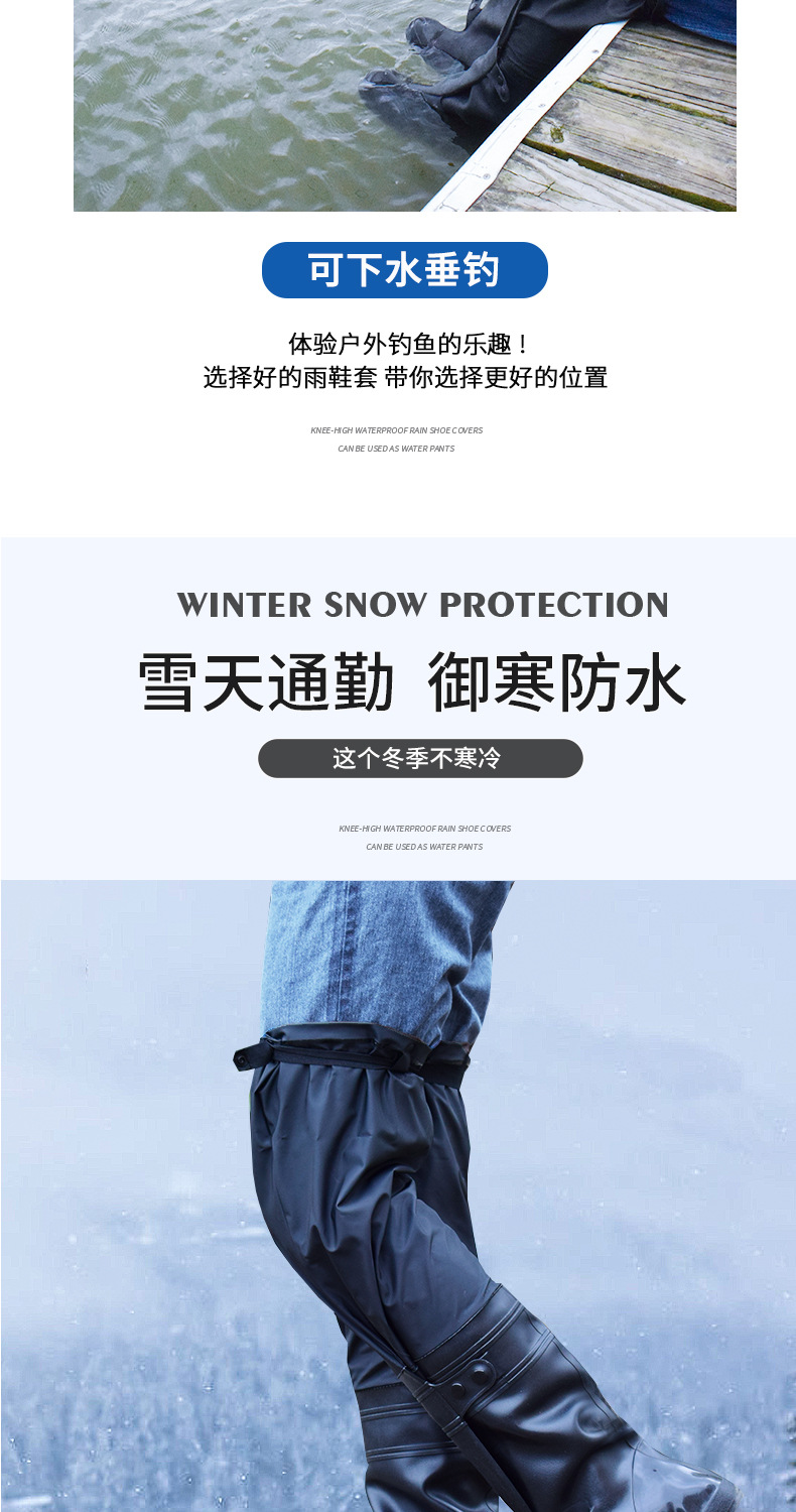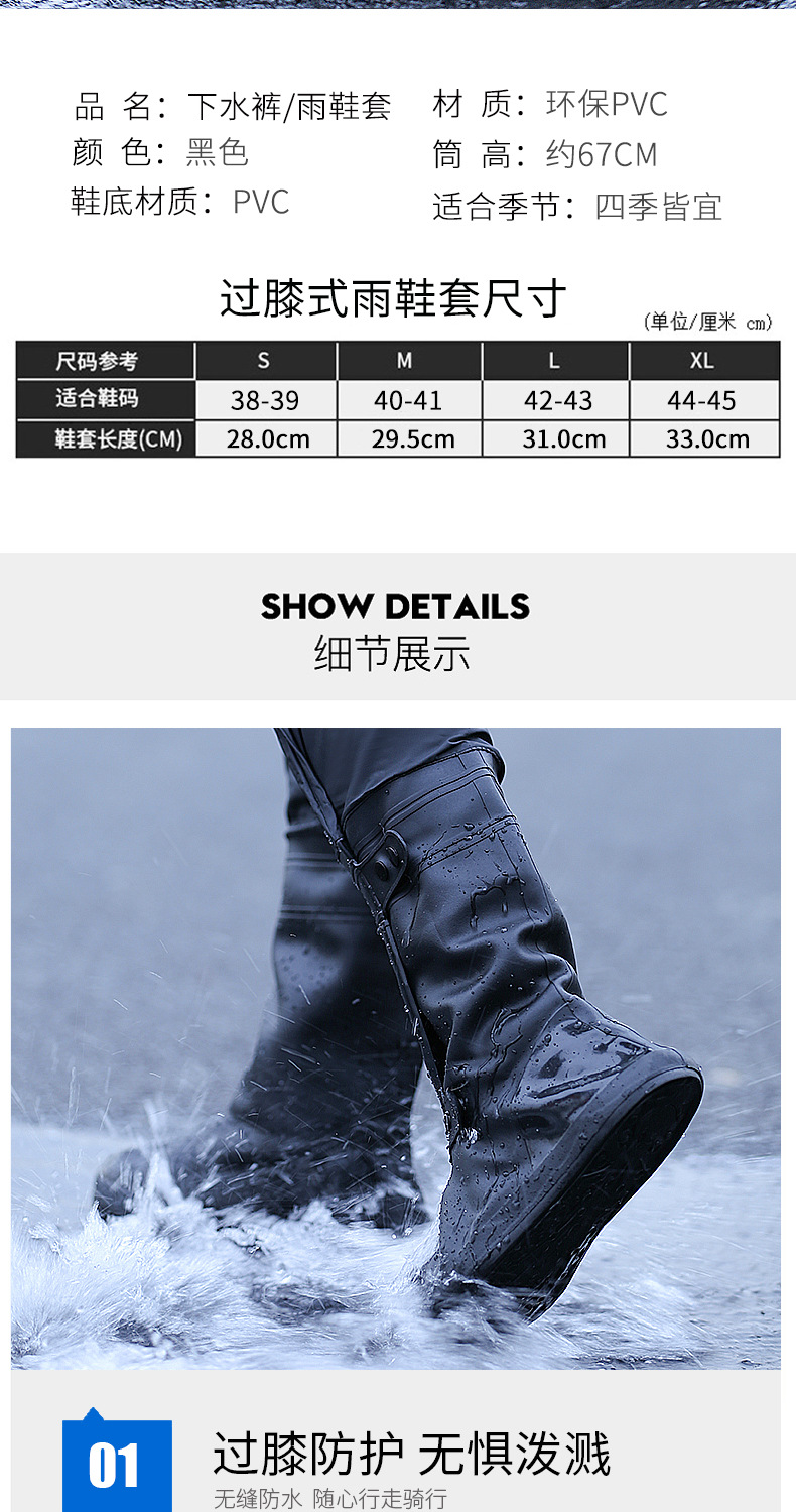 防滑加厚耐磨过膝雨鞋套雨天防水男女骑行下水裤雨裤一件代发跨境