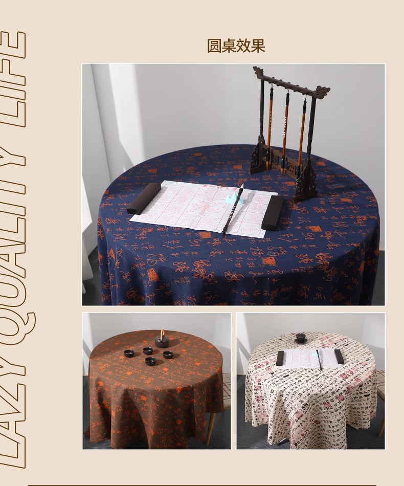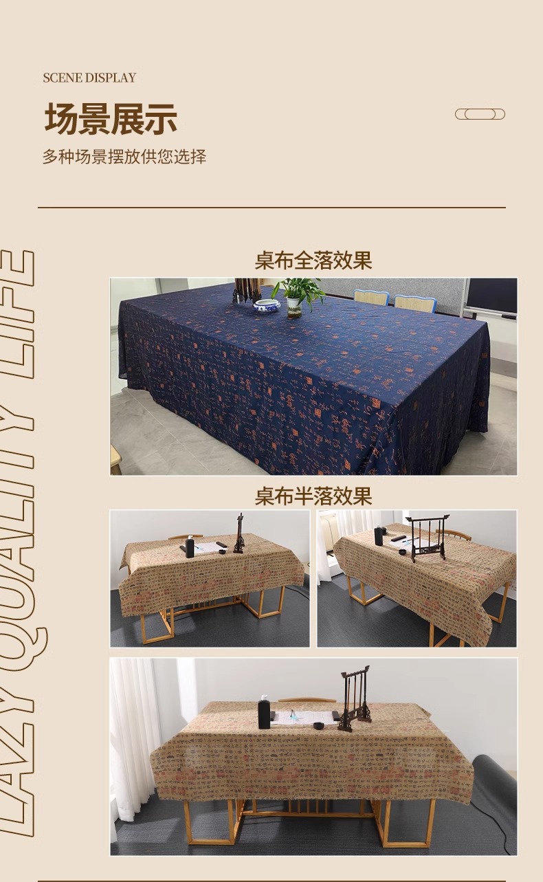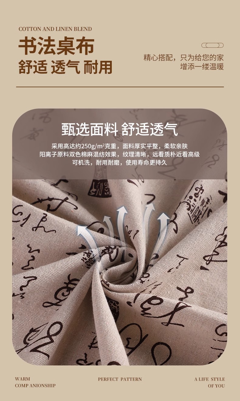 书法复古桌布布艺棉麻布料茶几布桌面拍照文艺餐桌布书桌学生桌垫