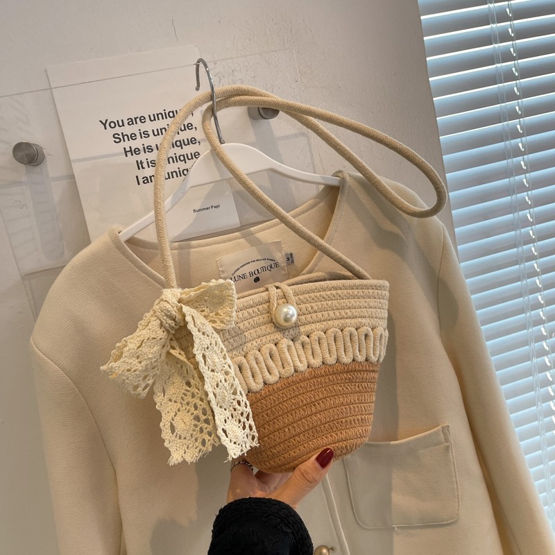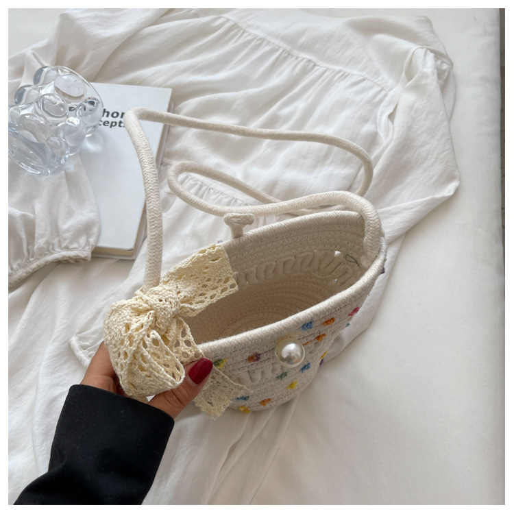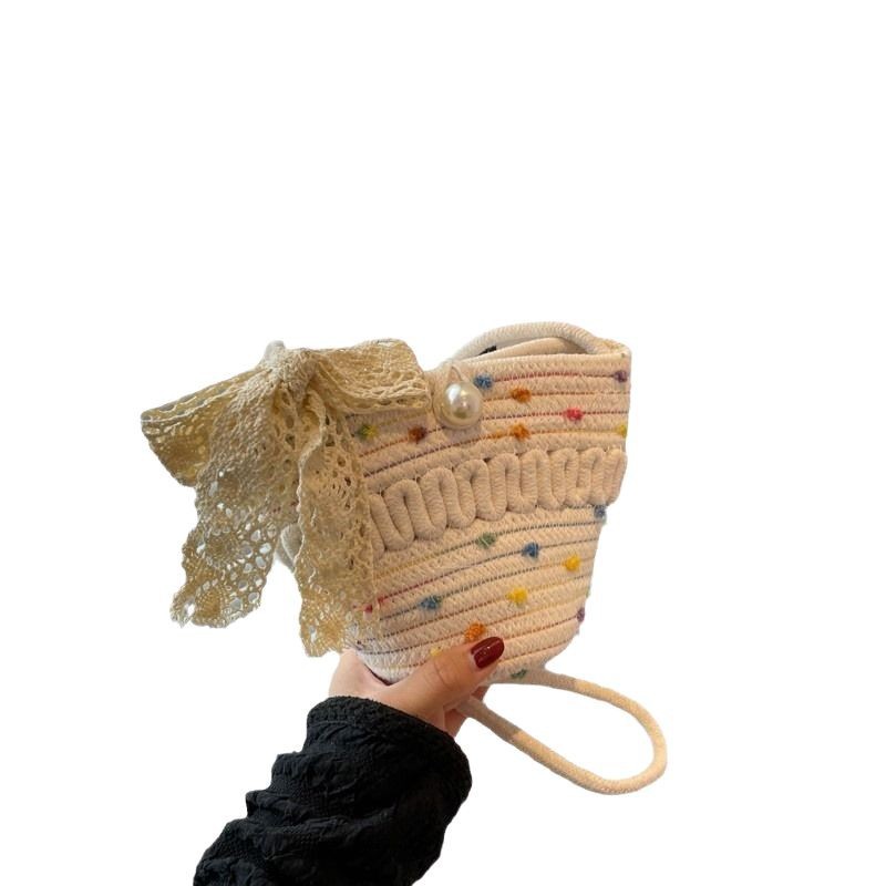 时尚棉线编织包小款手机包新款贝壳包单肩斜跨女包沙滩包草编包