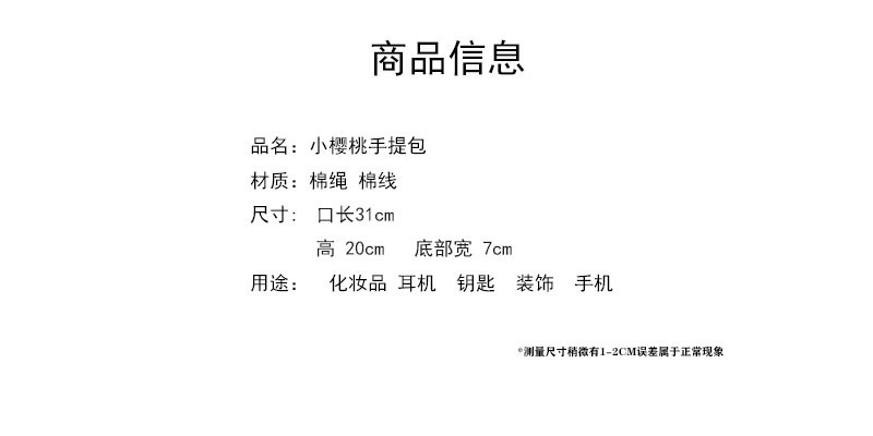 小樱桃手提包包棉线编织手拎包海边度假沙滩包托特包手提 手拎包