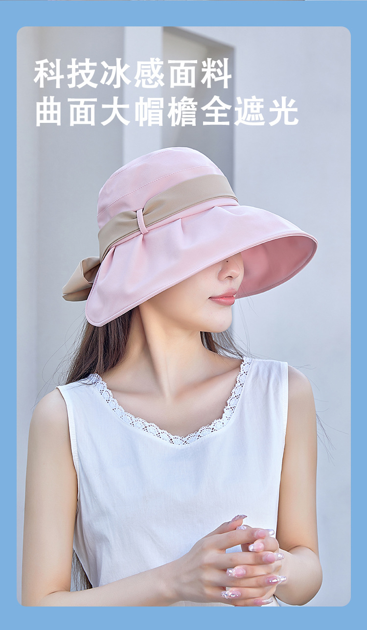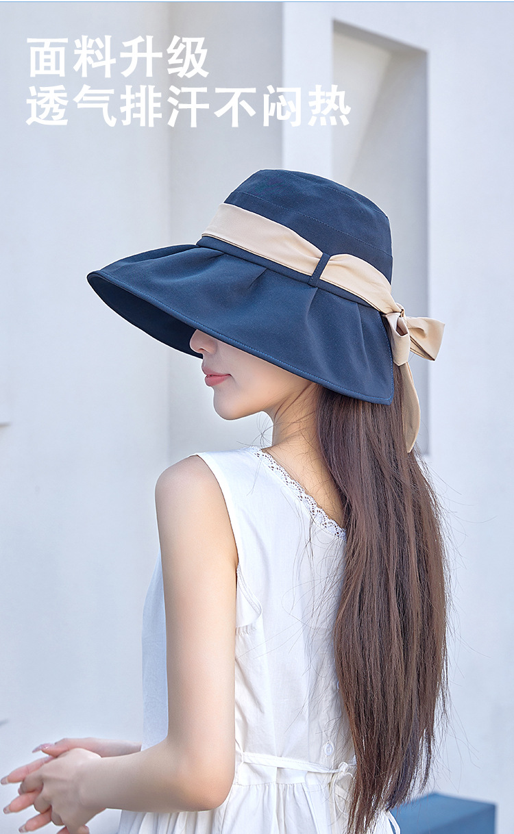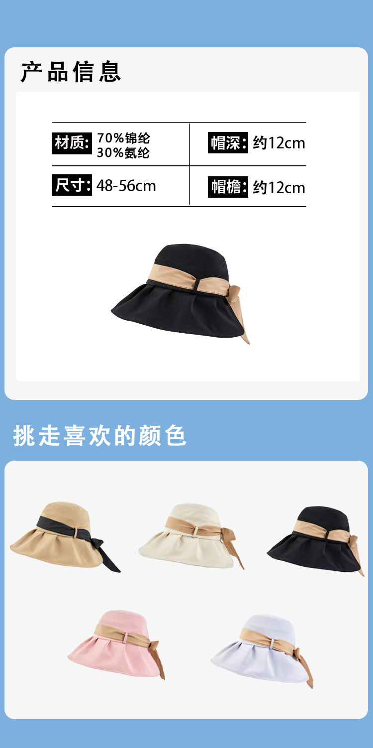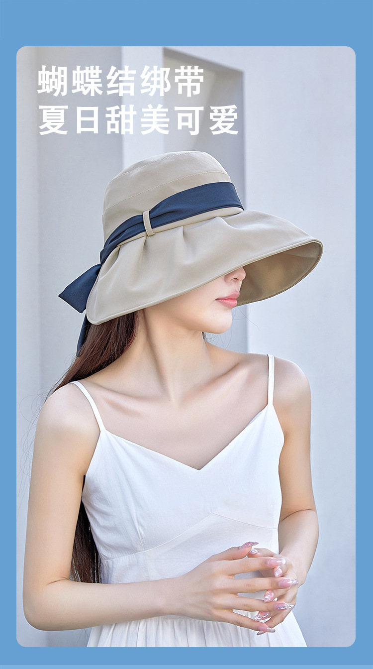 渔夫帽撞色蝴蝶结夏季出游女帽子防晒遮阳防紫外线纯色百搭太阳帽