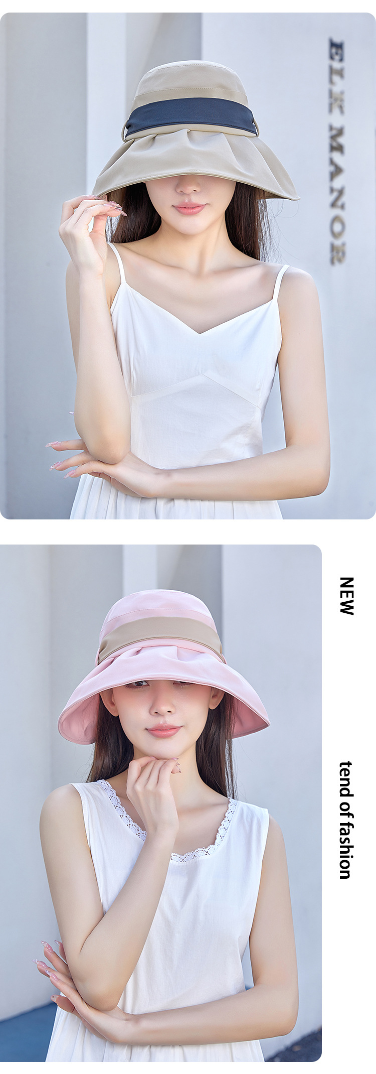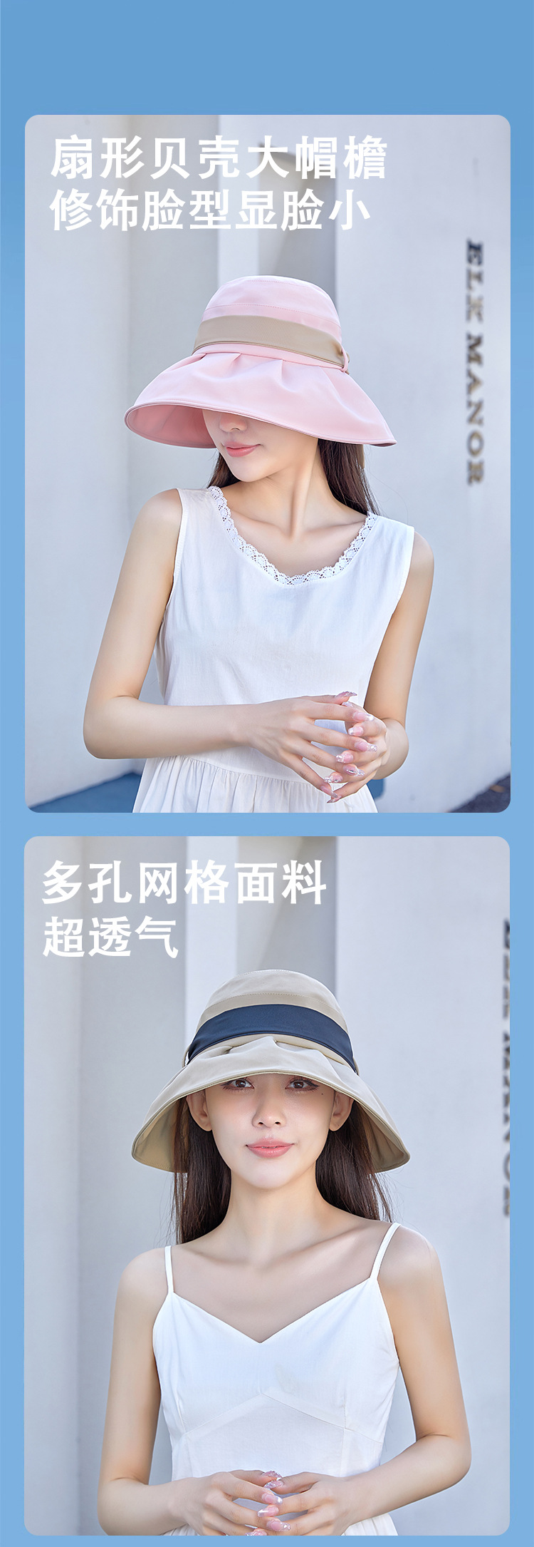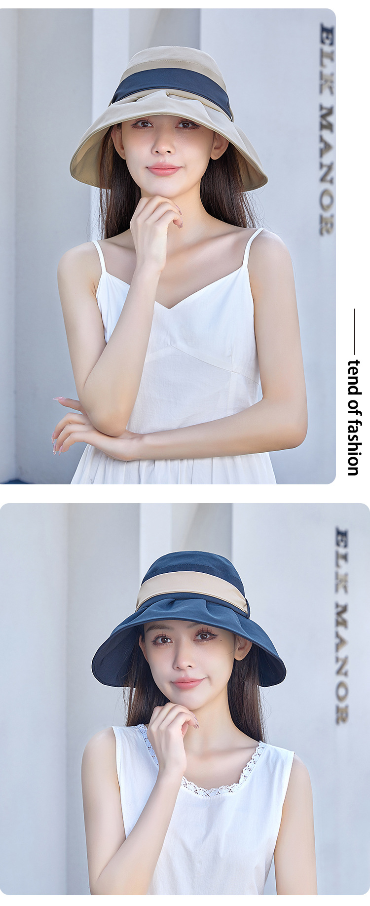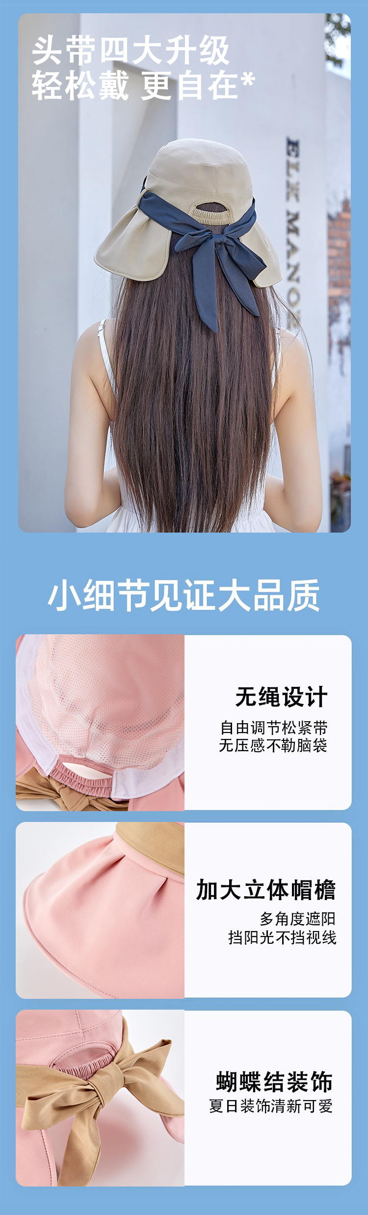 渔夫帽撞色蝴蝶结夏季出游女帽子防晒遮阳防紫外线纯色百搭太阳帽