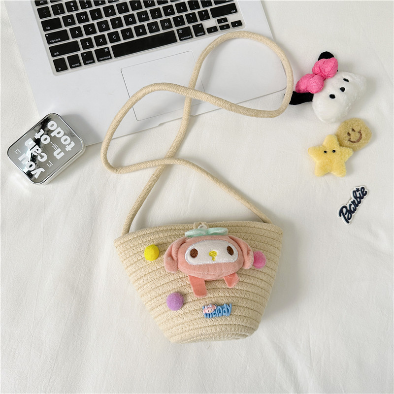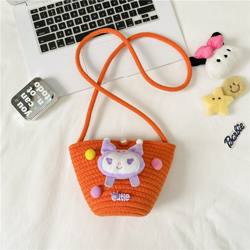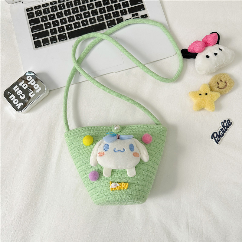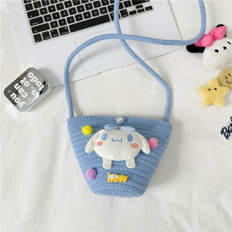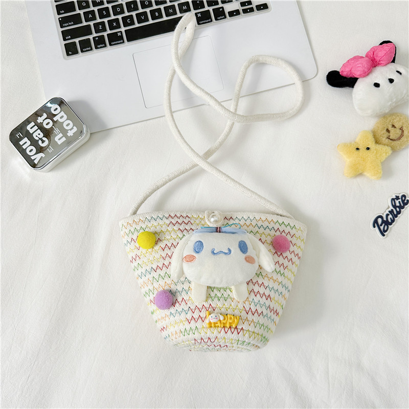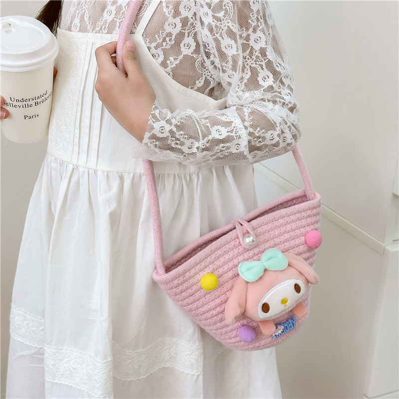 跨境新款日系可爱卡通小包包女童手工编织单肩包糖果色元气小清新