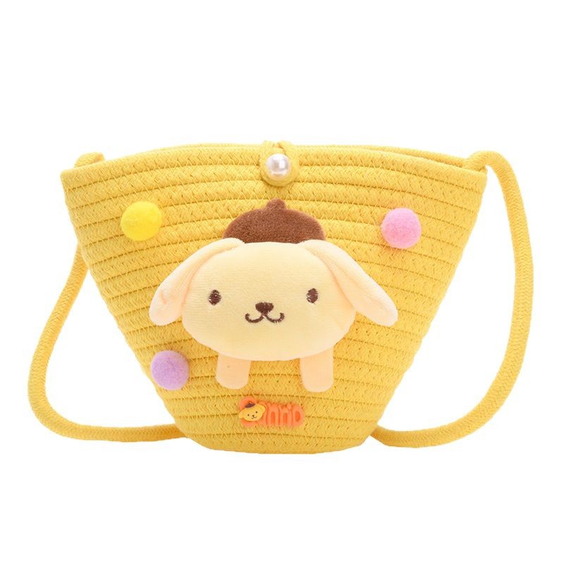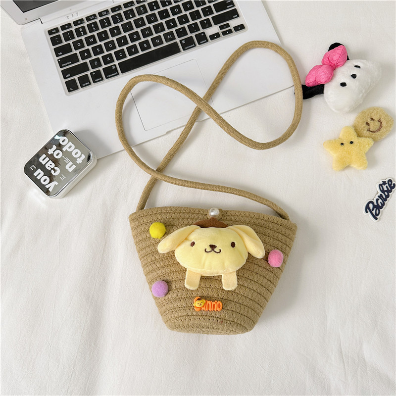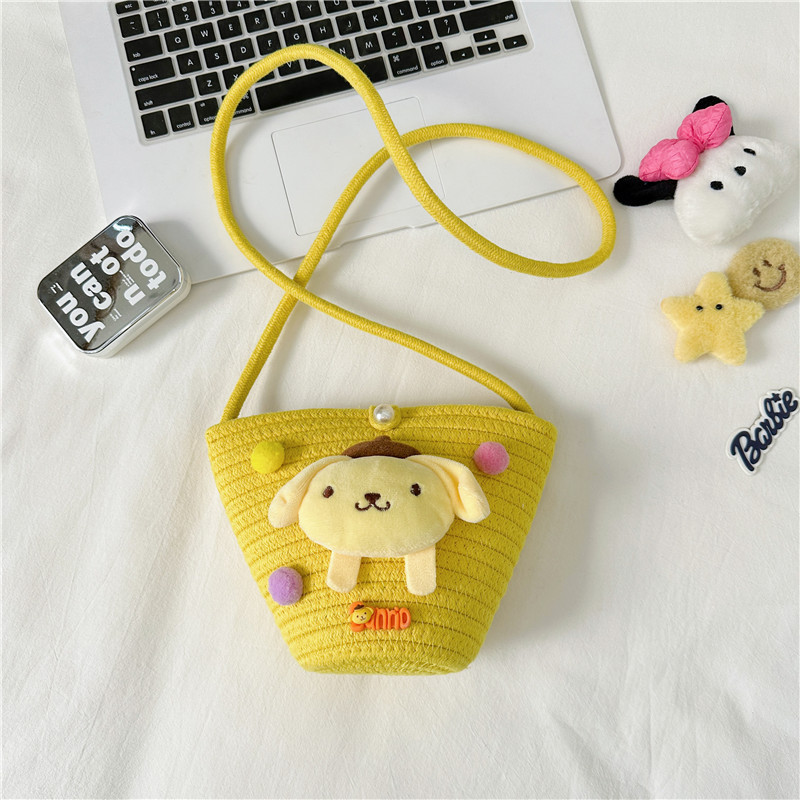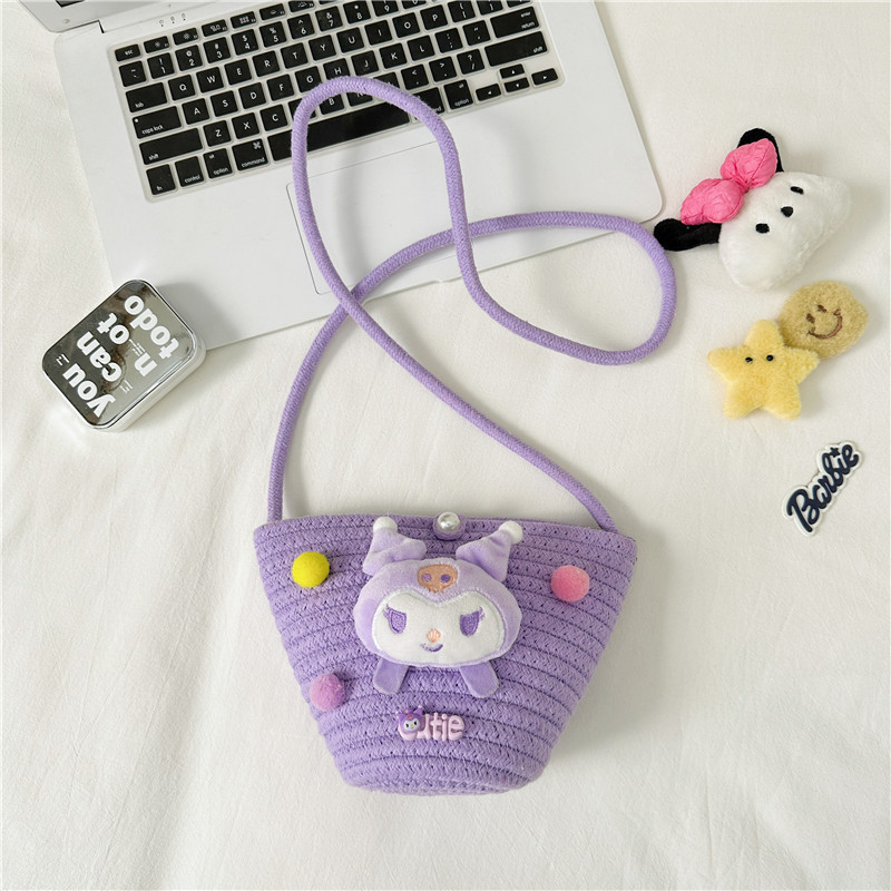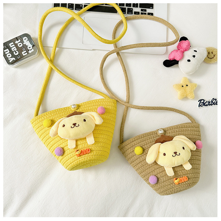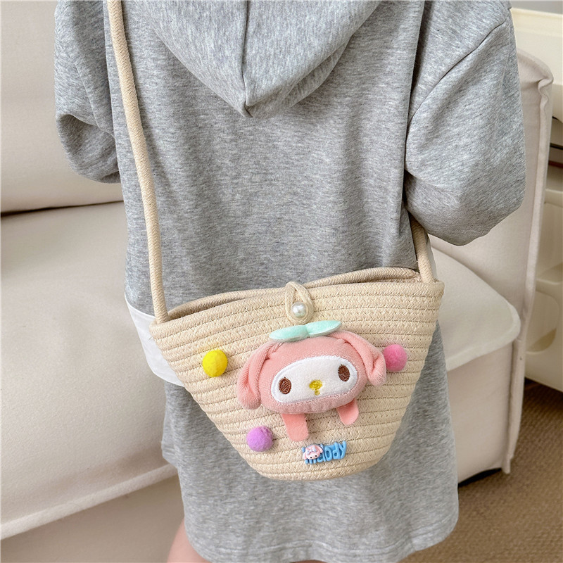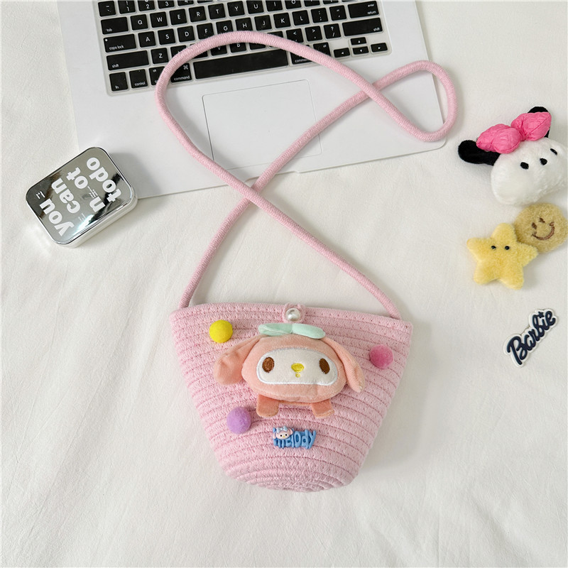 跨境新款日系可爱卡通小包包女童手工编织单肩包糖果色元气小清新