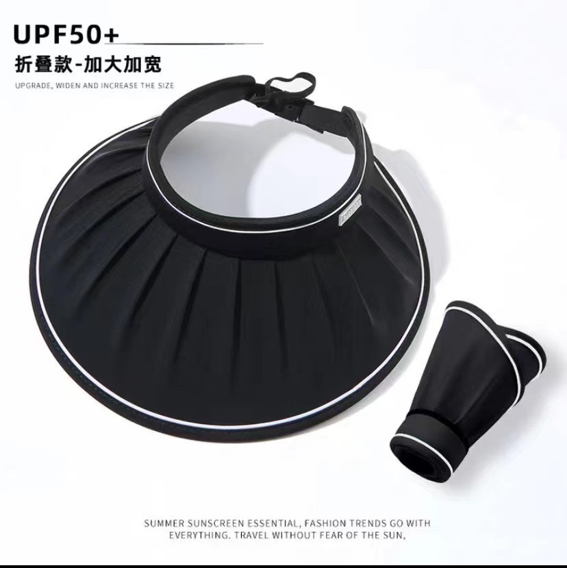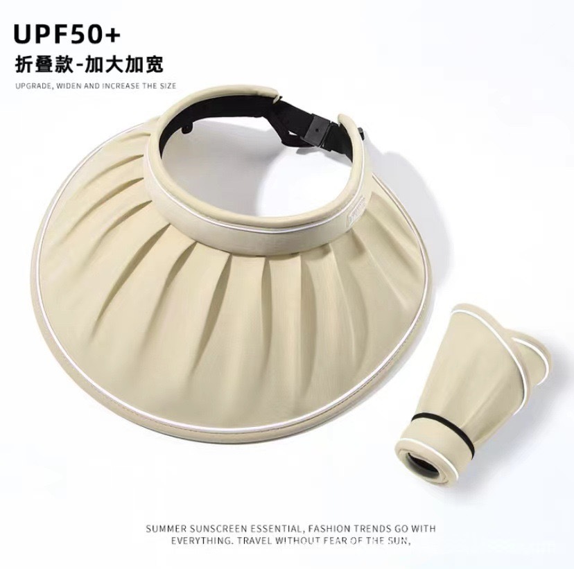 夏季韩版遮阳防晒遮脸大檐空顶帽褶皱百搭时尚户外太阳帽可折叠女