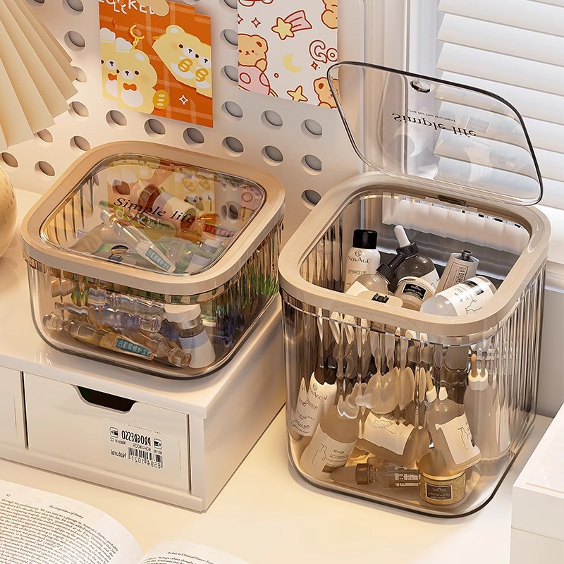 桌面收纳盒化妆品次抛精华护肤品盒子透明带盖整理盒高级感置物架