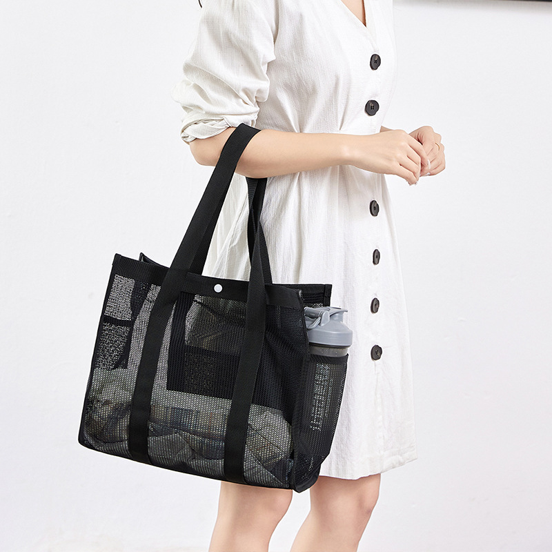 新款韩国沙滩包时尚涤纶镂空健身单肩包运动游泳包旅行收纳洗漱包