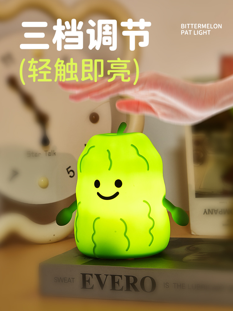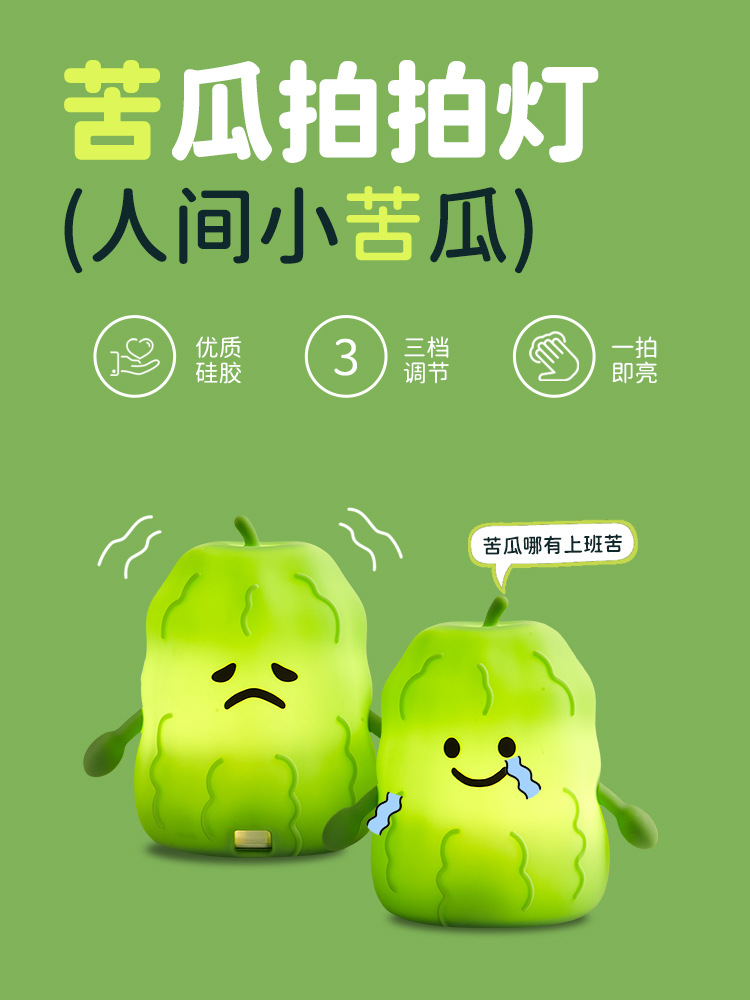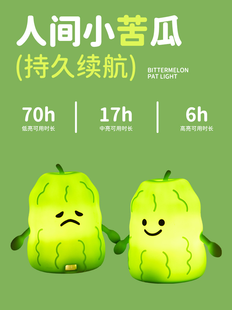 外贸专供嘟倪倪苦瓜硅胶拍拍小夜灯灯起夜灯可爱创意氛围灯摆