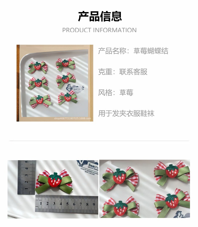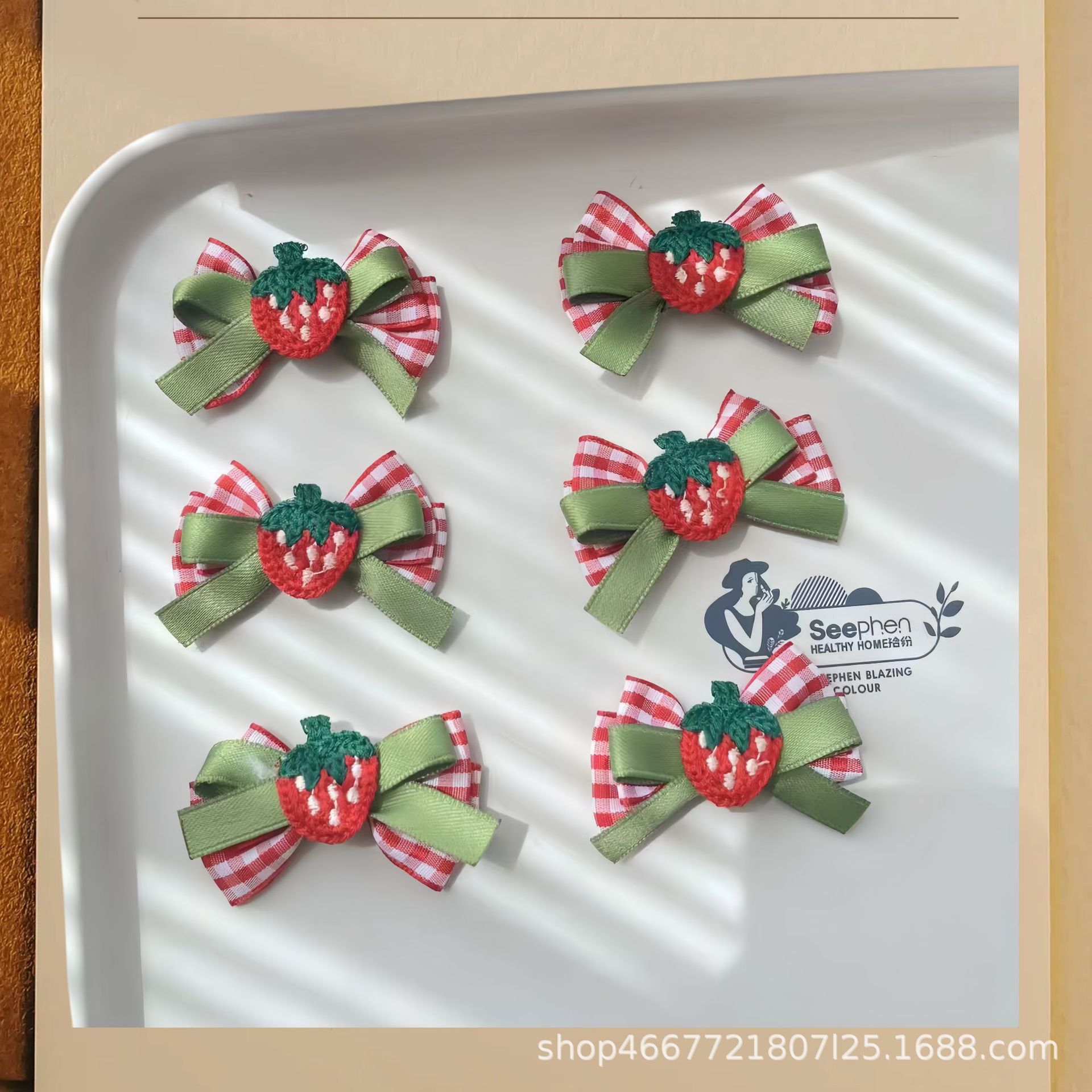 红色草莓格子蝴蝶结布艺配件发夹衣服配饰裤子袜子服装辅料配饰
