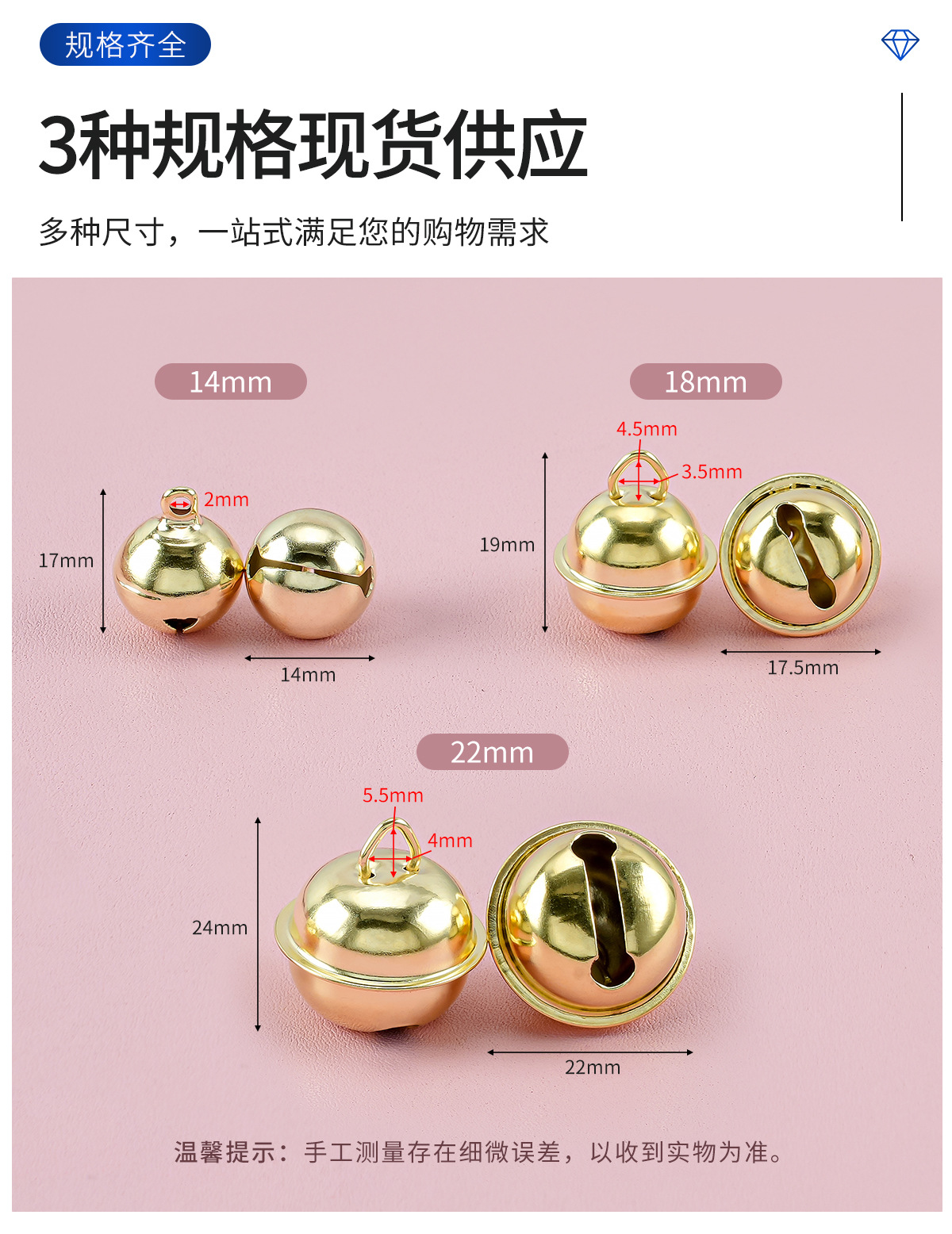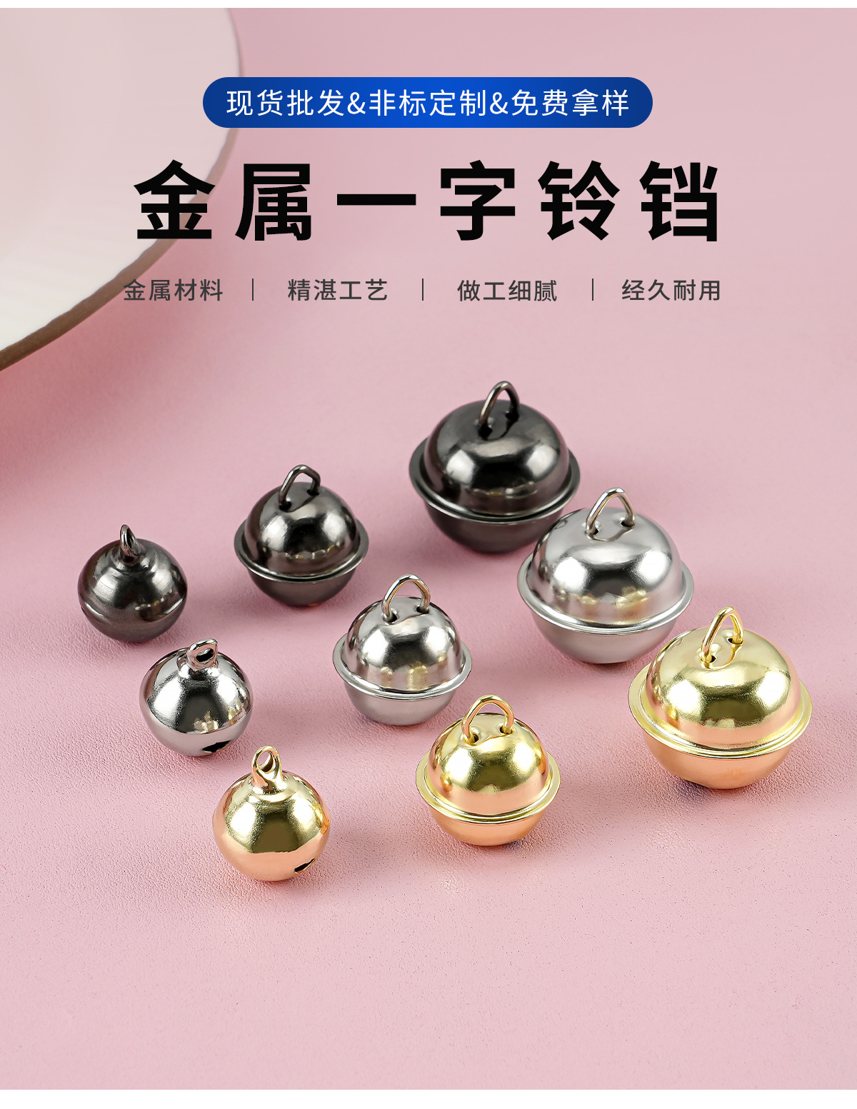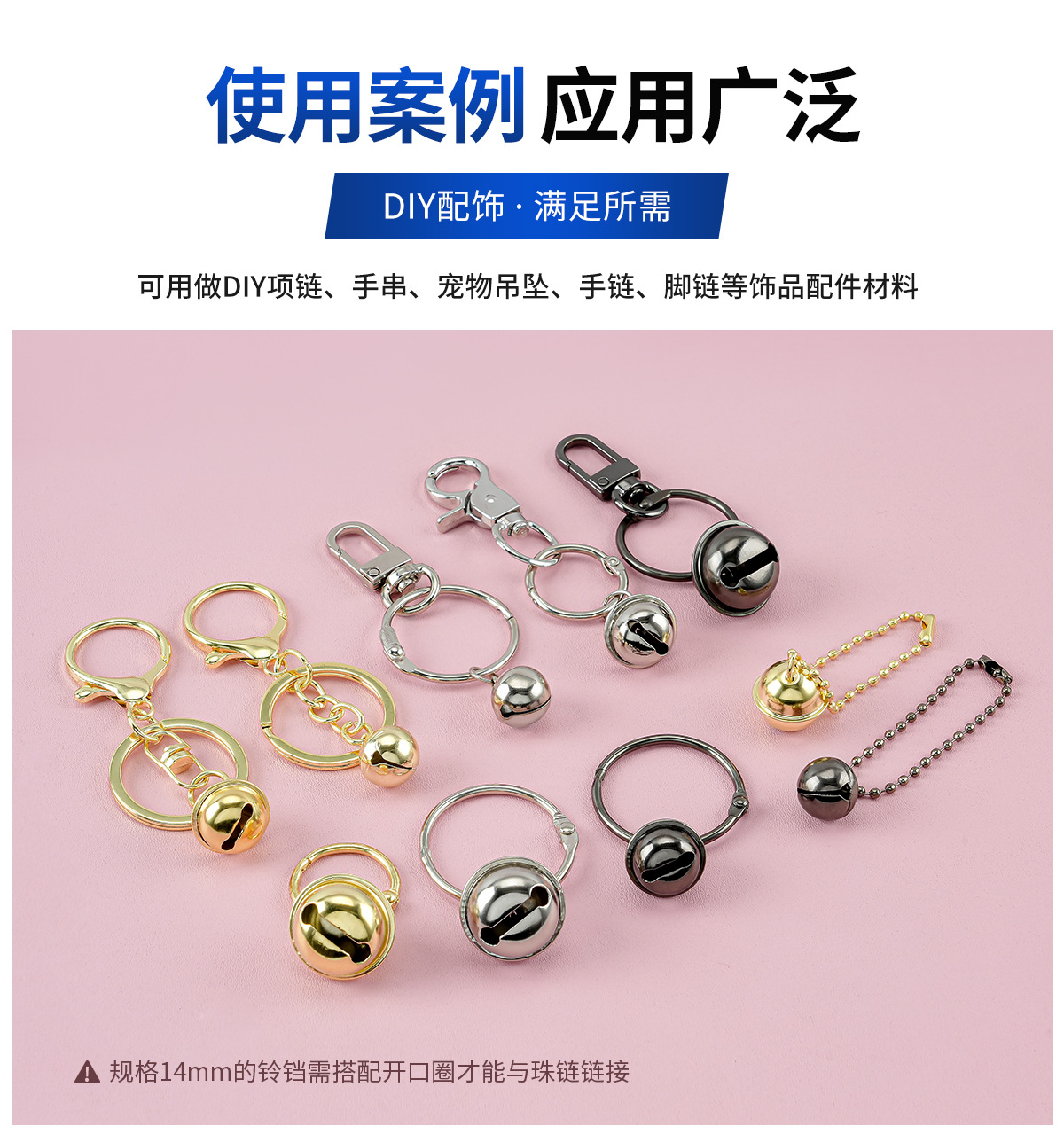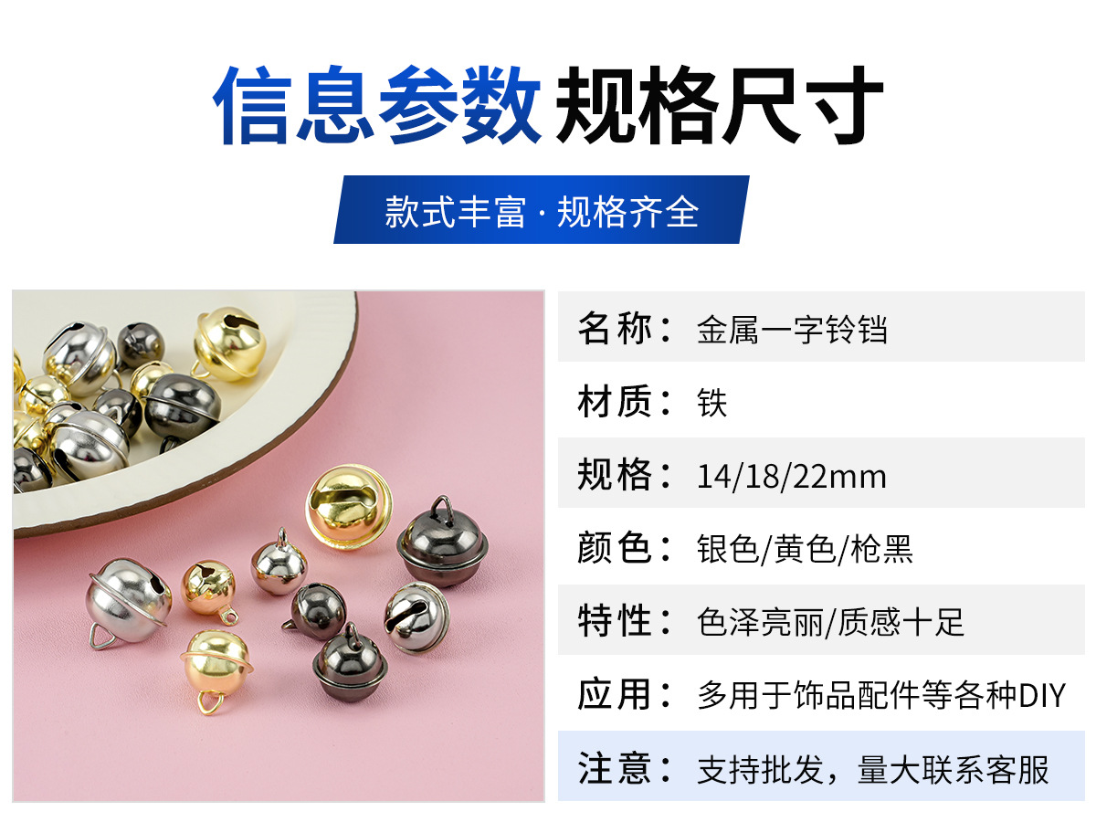 14-22mm金属一字铃铛铁 金色宠物铃铛diy饰品配件 钥匙扣创意挂件