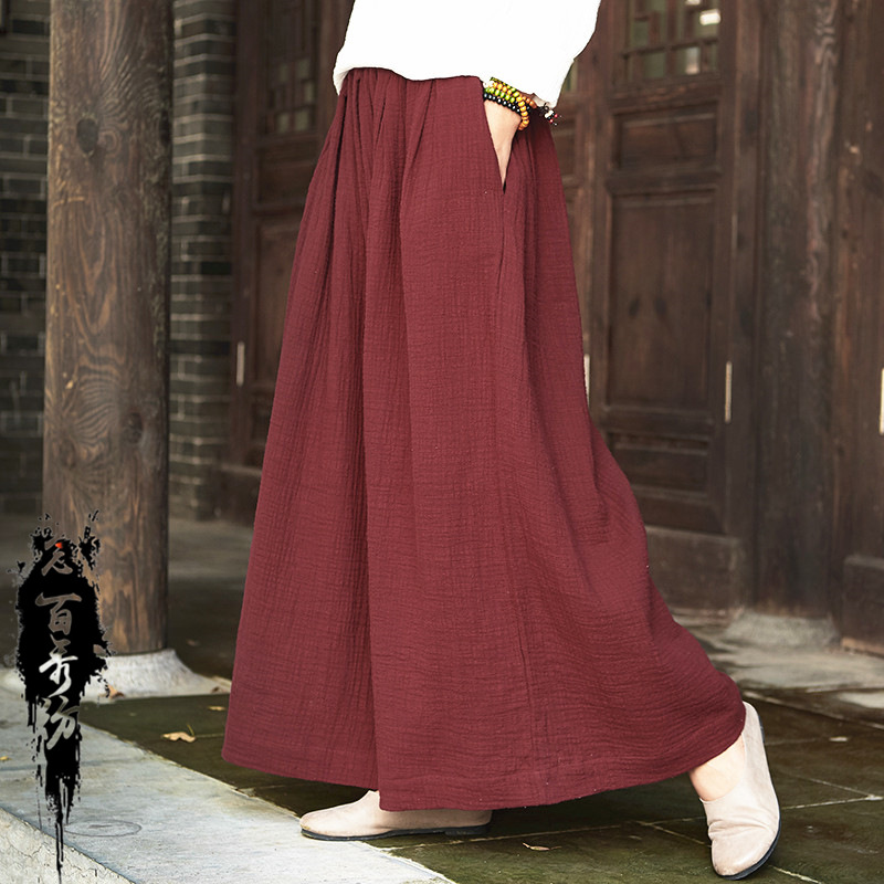 25春夏棉麻女装新品念百秀纺禅意柔软舒适女式阔腿瑜伽打坐长裙裤