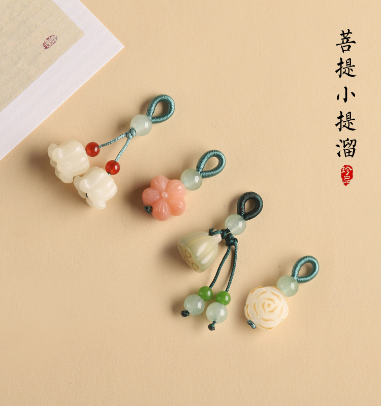 菩提梅花小花小提溜小坠子 diy女款手链项链桃木莲蓬铃兰花配饰