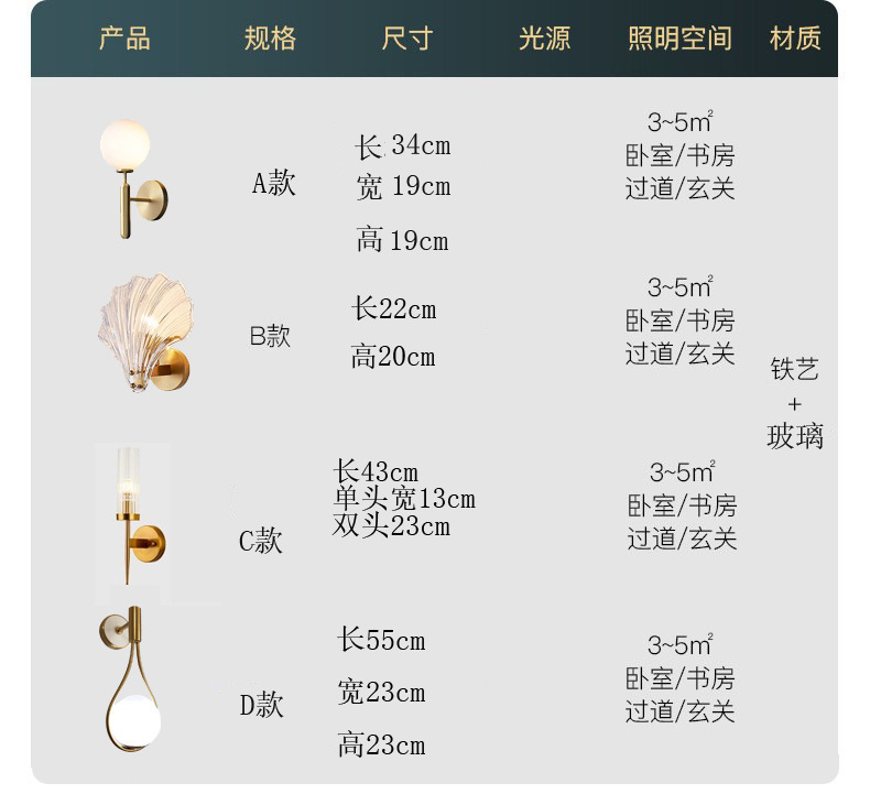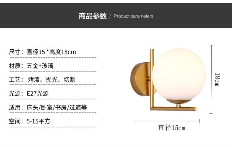 外贸专供北欧卧室壁灯床头灯客厅装饰简约过道走廊led壁灯中山灯