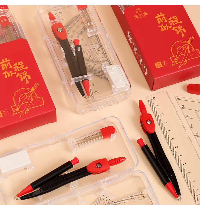 前程似锦圆规套装学生专用尺子圆规七件套初中生考试学习用品批发