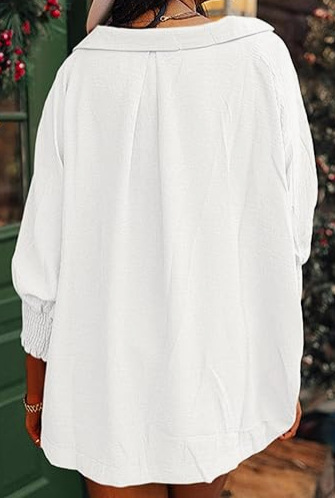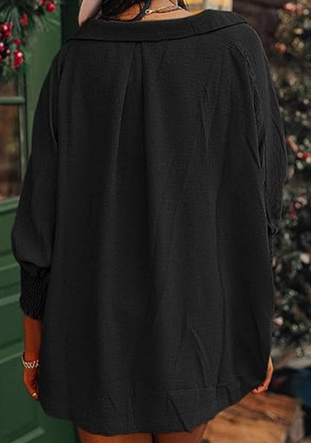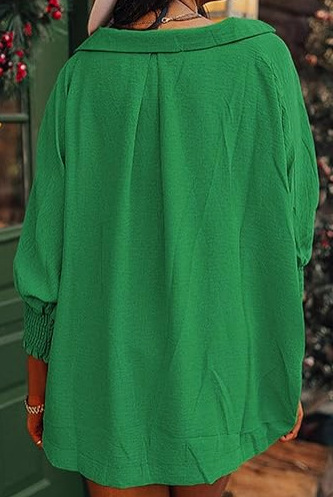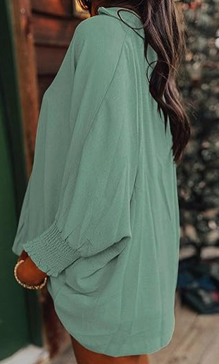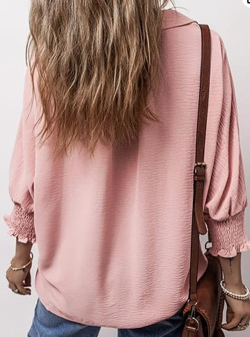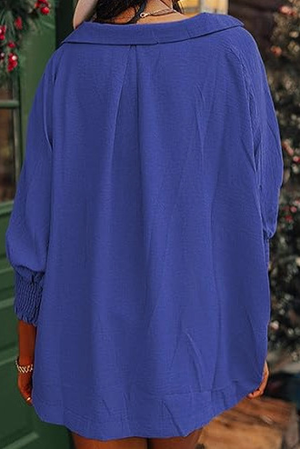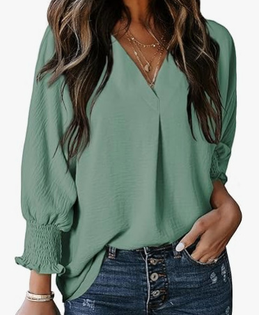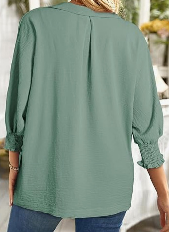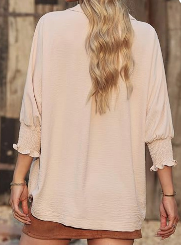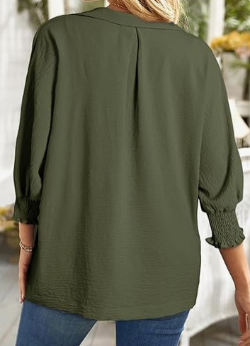 2024女式束腰上衣V领休闲宽松七分袖衬衫连衣裙衬衫上衣罩衫T恤