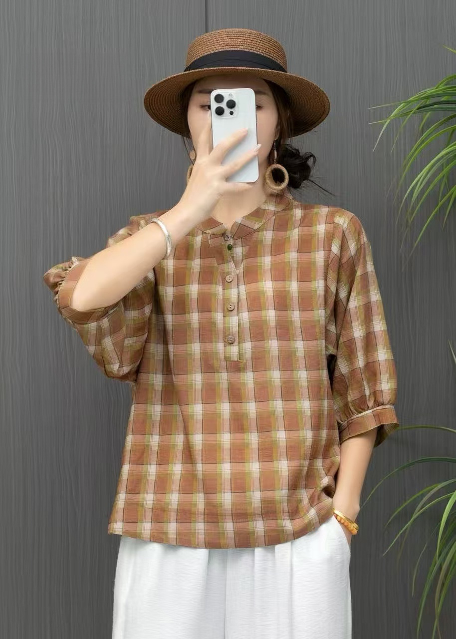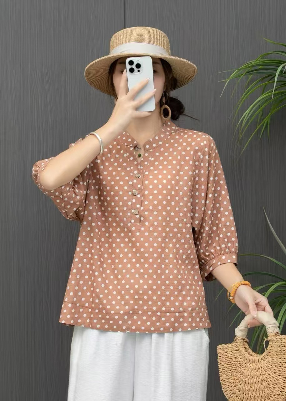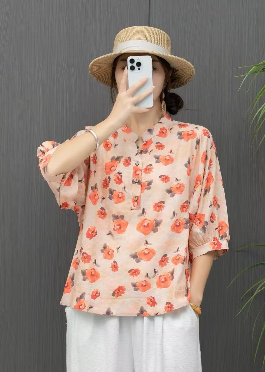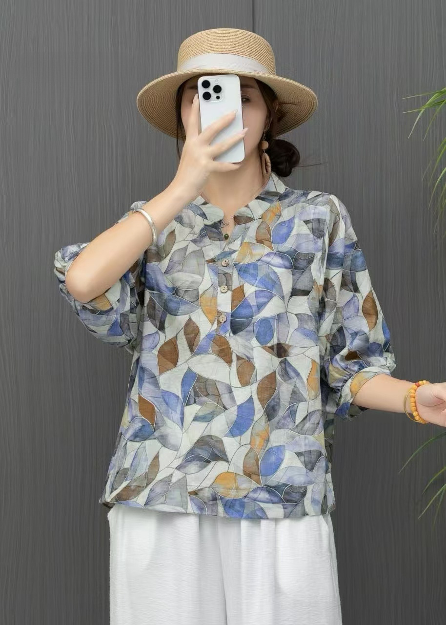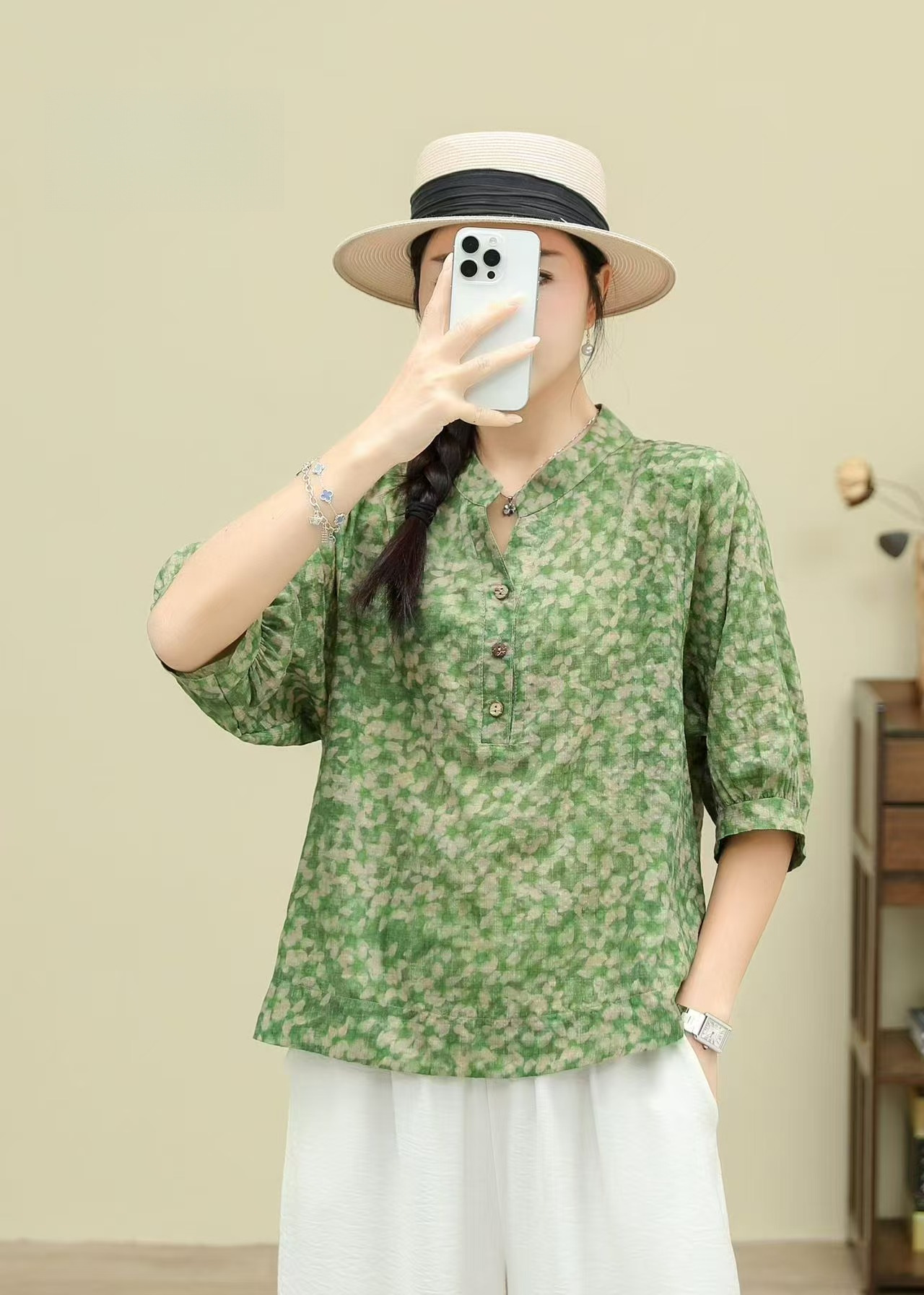 2025夏季新款棉麻碎花小衫女上衣苎麻文艺复古宽松大码妈妈装批发