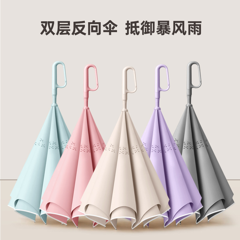 直杆反向伞女全自动大号车用雨伞双层抗暴风雨男士长柄汽车反向伞