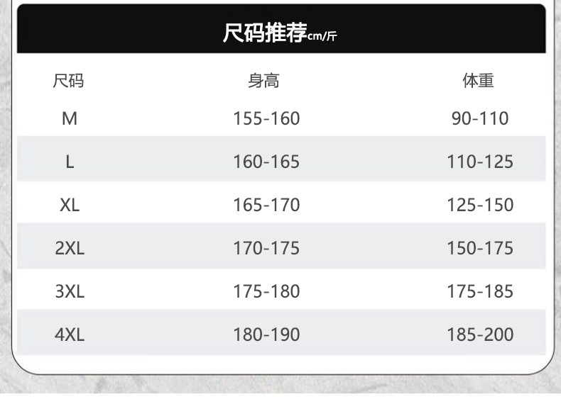 | 3xl [87.50 kg-92.50 kg]](3XL【175-185斤】) | USD $0.0 | 9999 piece available |