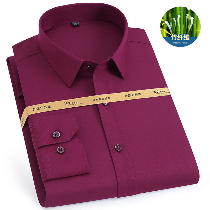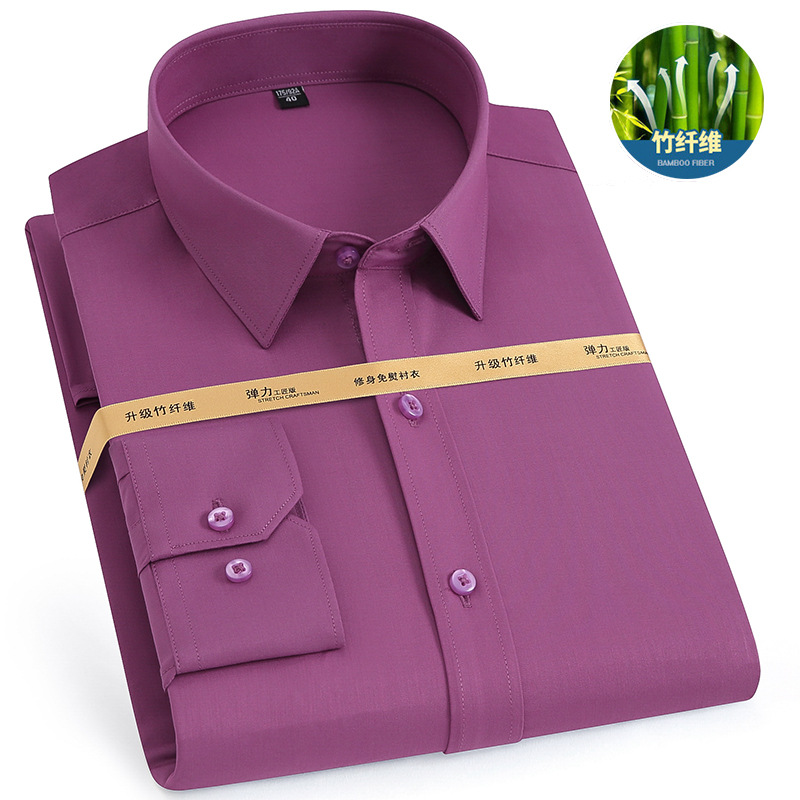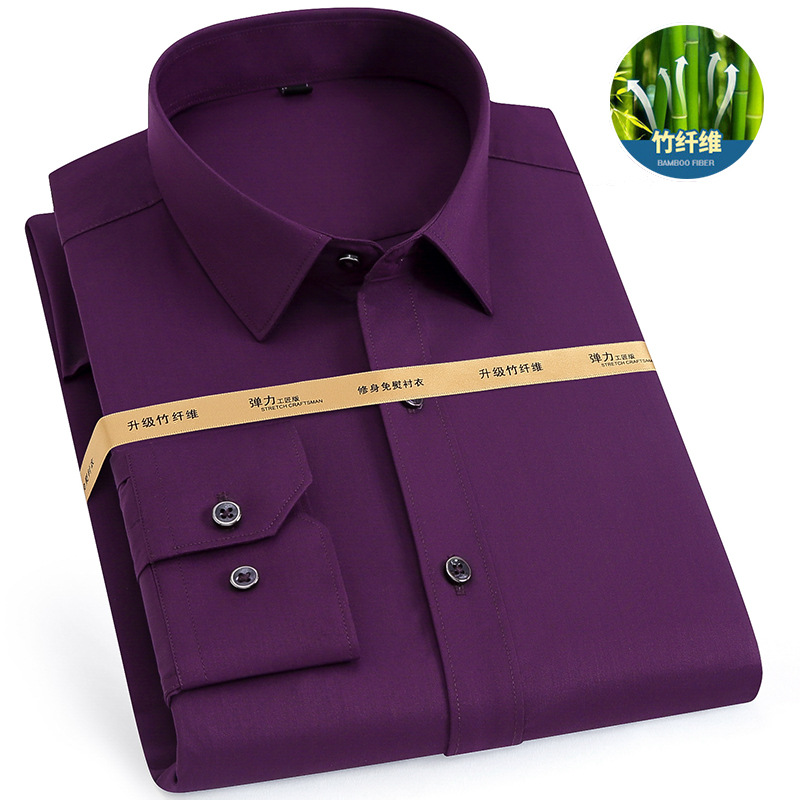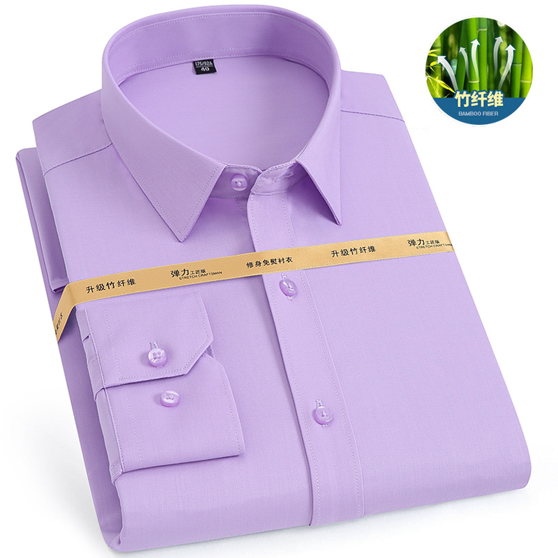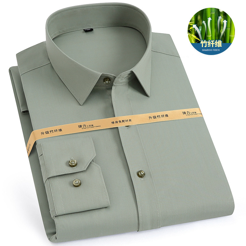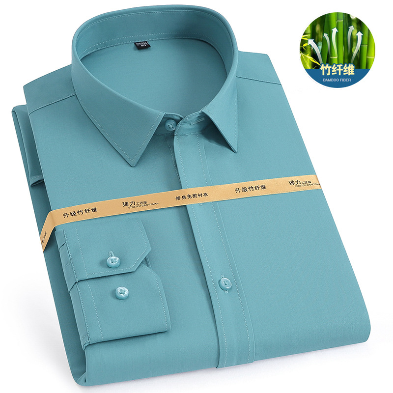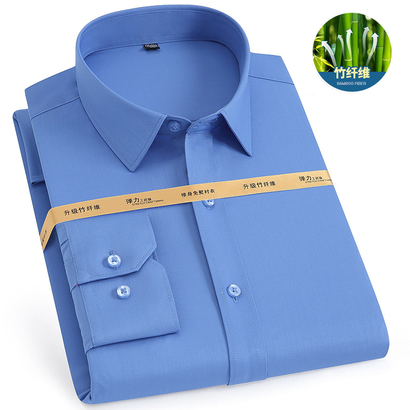竹纤维免烫衬衫男士长袖弹力抗皱职业工装工作服纯色修身商务衬衣