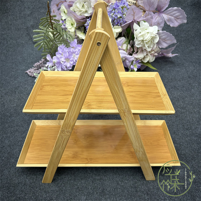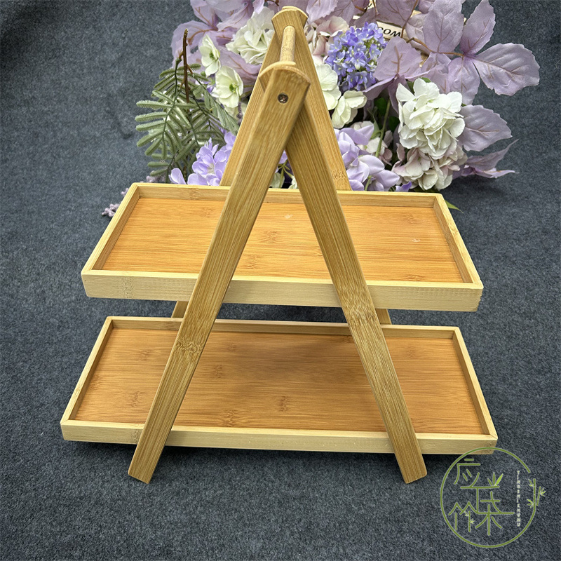 竹木双层寿司纸杯蛋糕架手提式木质甜点展示架甜点桌火锅寿司置物
