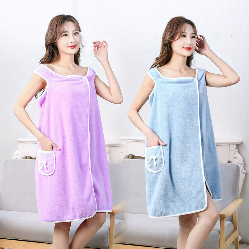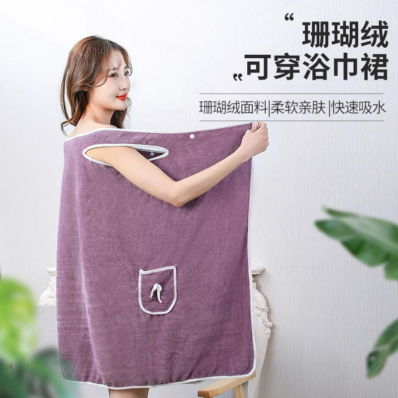 加厚珊瑚绒吊带浴裙女成人家用洗澡柔软吸水浴袍不掉毛可穿浴巾