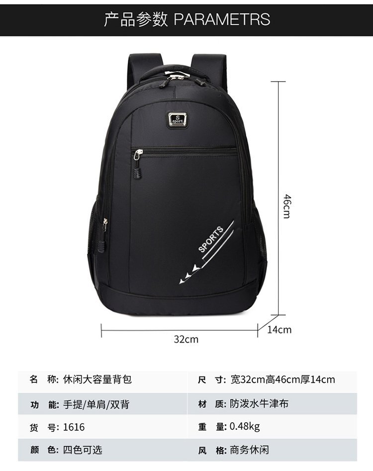 轻松旅游,双肩包是你的好选择黑色均码桔色绿色蓝色男商务出行
