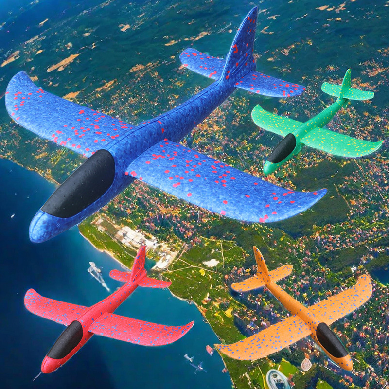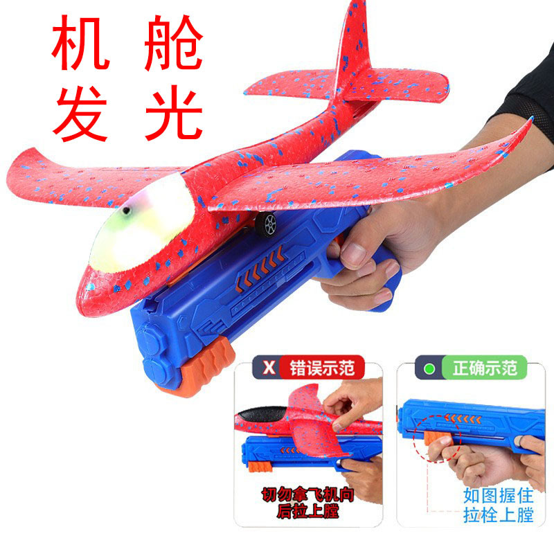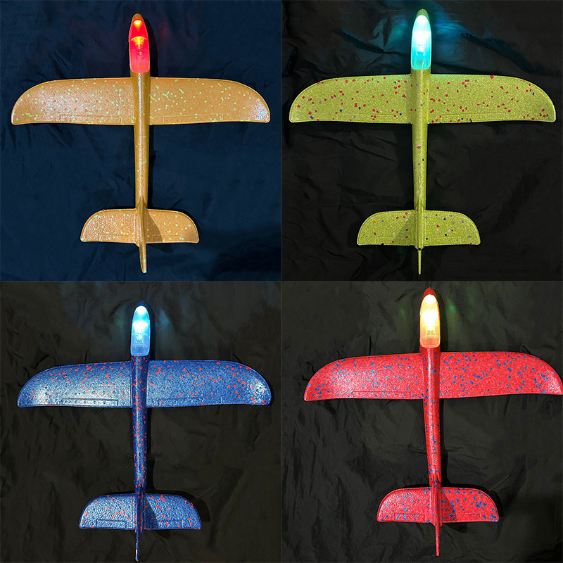 发光手抛飞机小号38cm双孔泡沫飞机epp滑翔机儿童DIY涂鸦玩具批发