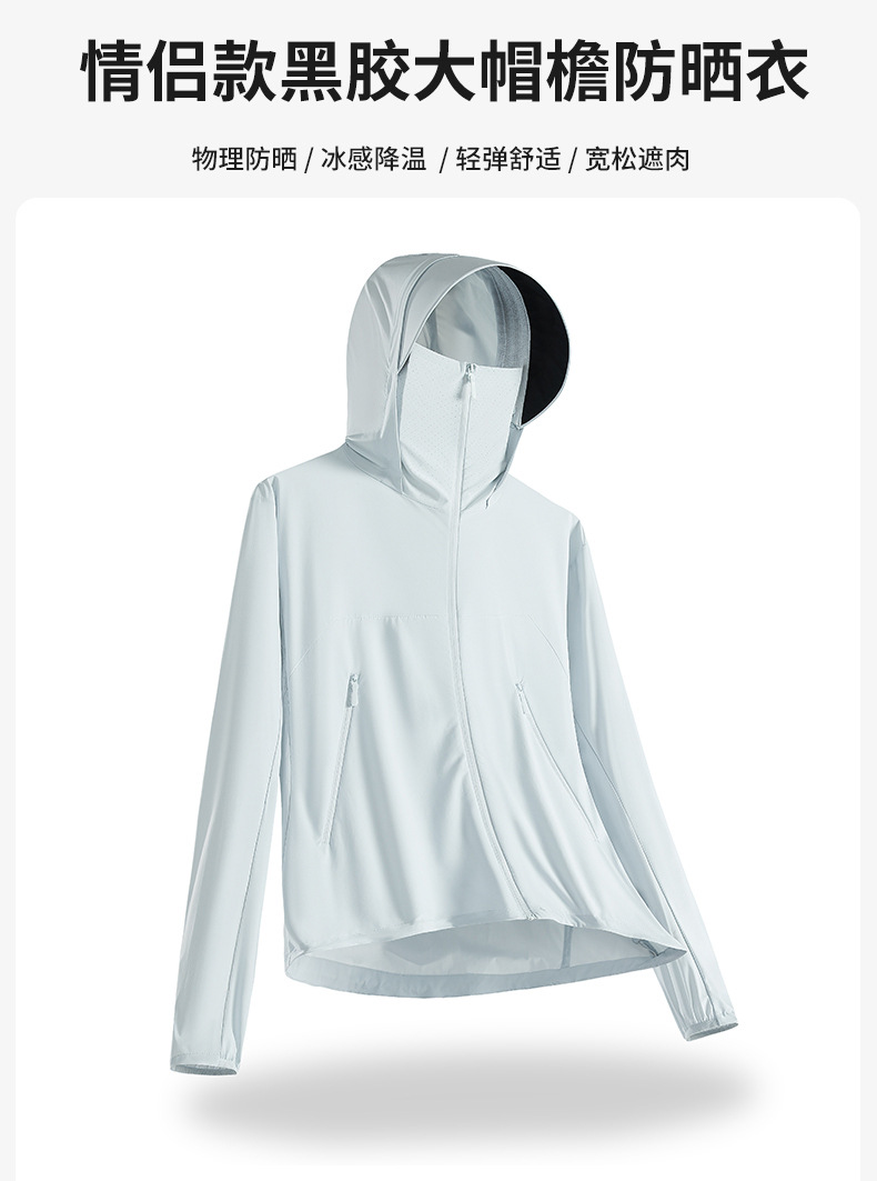 黑胶帽檐防晒衣男女新款夏季防紫外线户外运动骑行钓鱼服冰丝外套