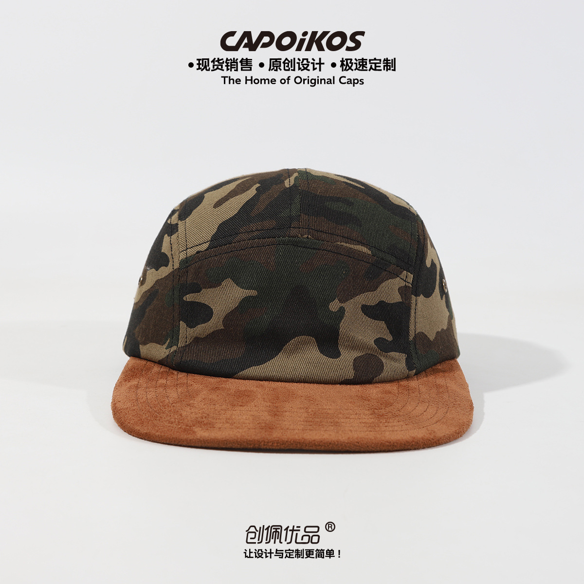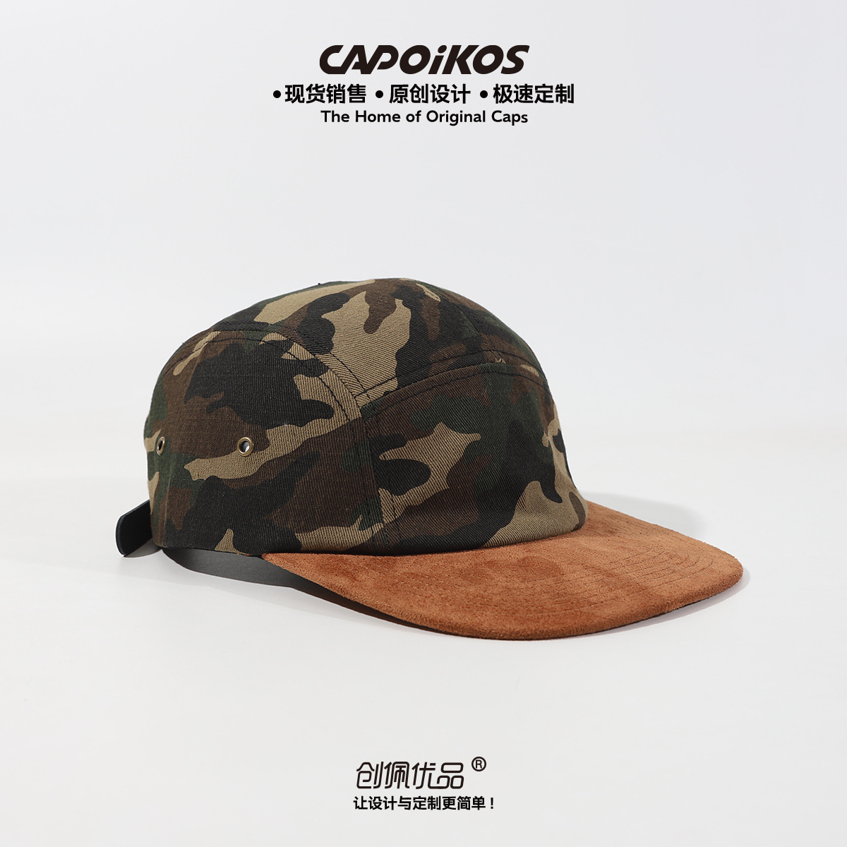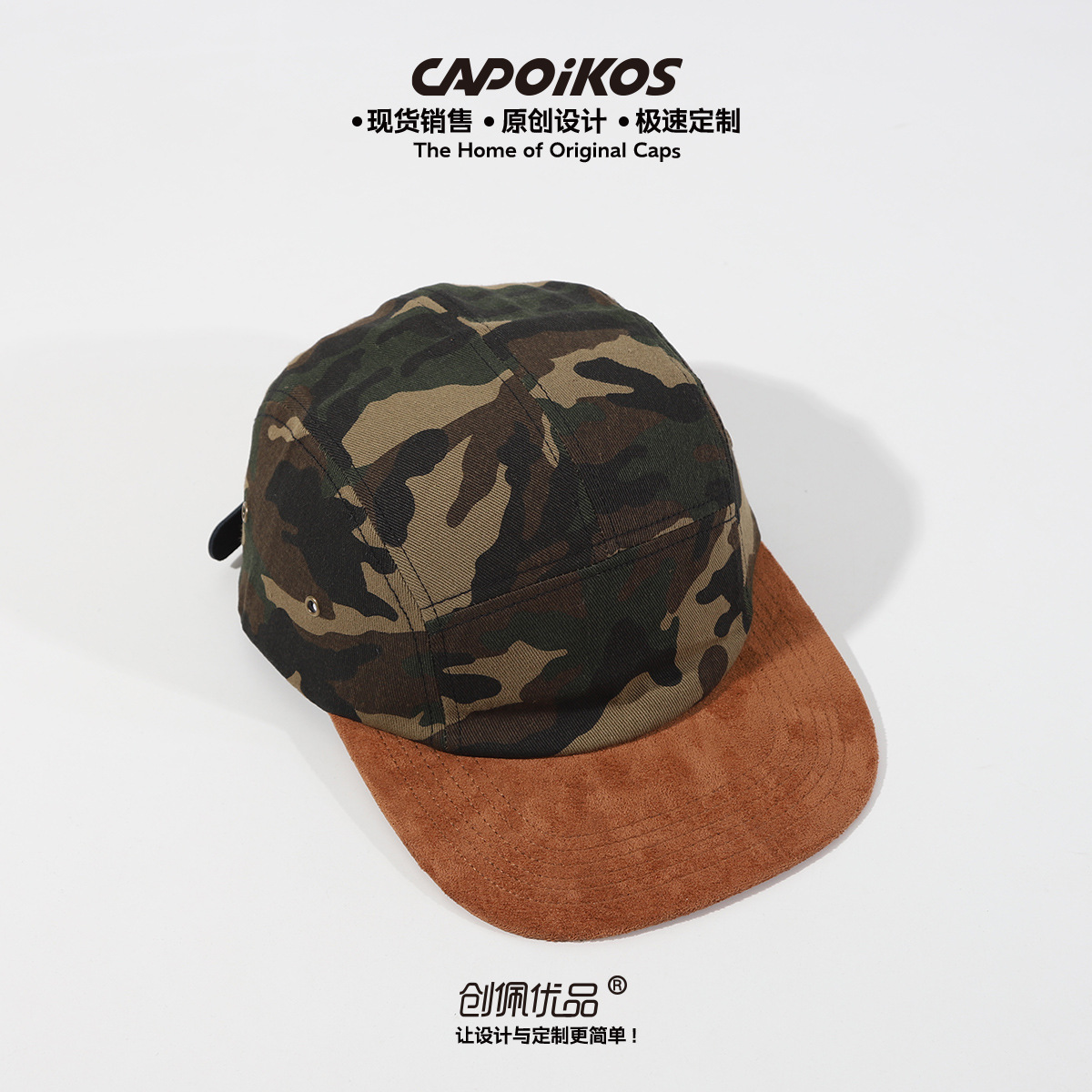 帽子男外贸跨境平檐迷彩露营帽可定制刺绣皮标logo棒球帽批发