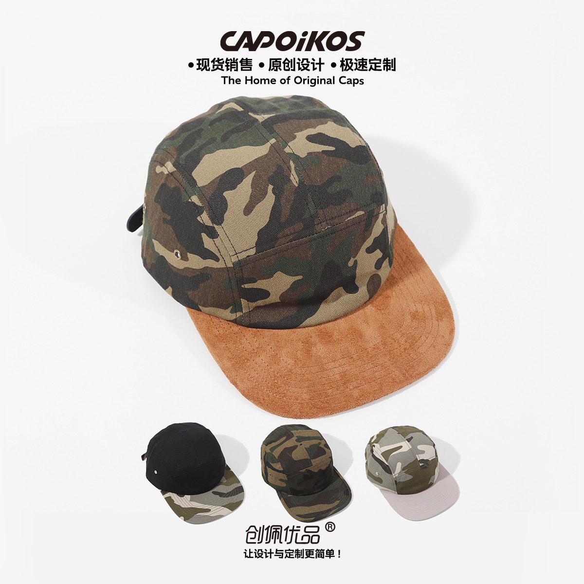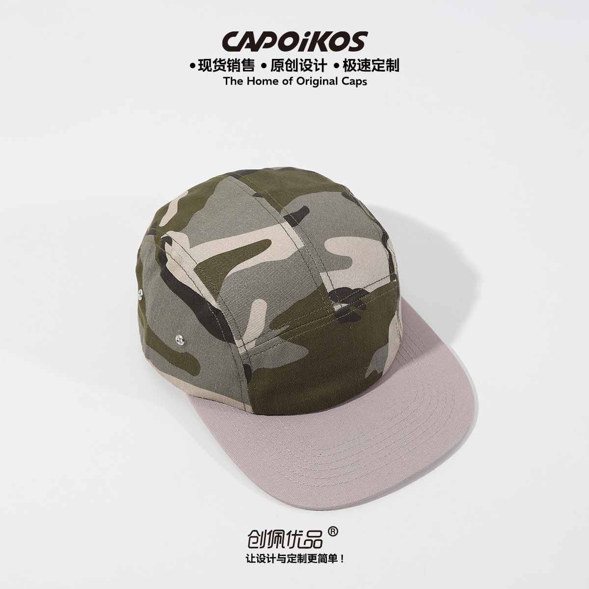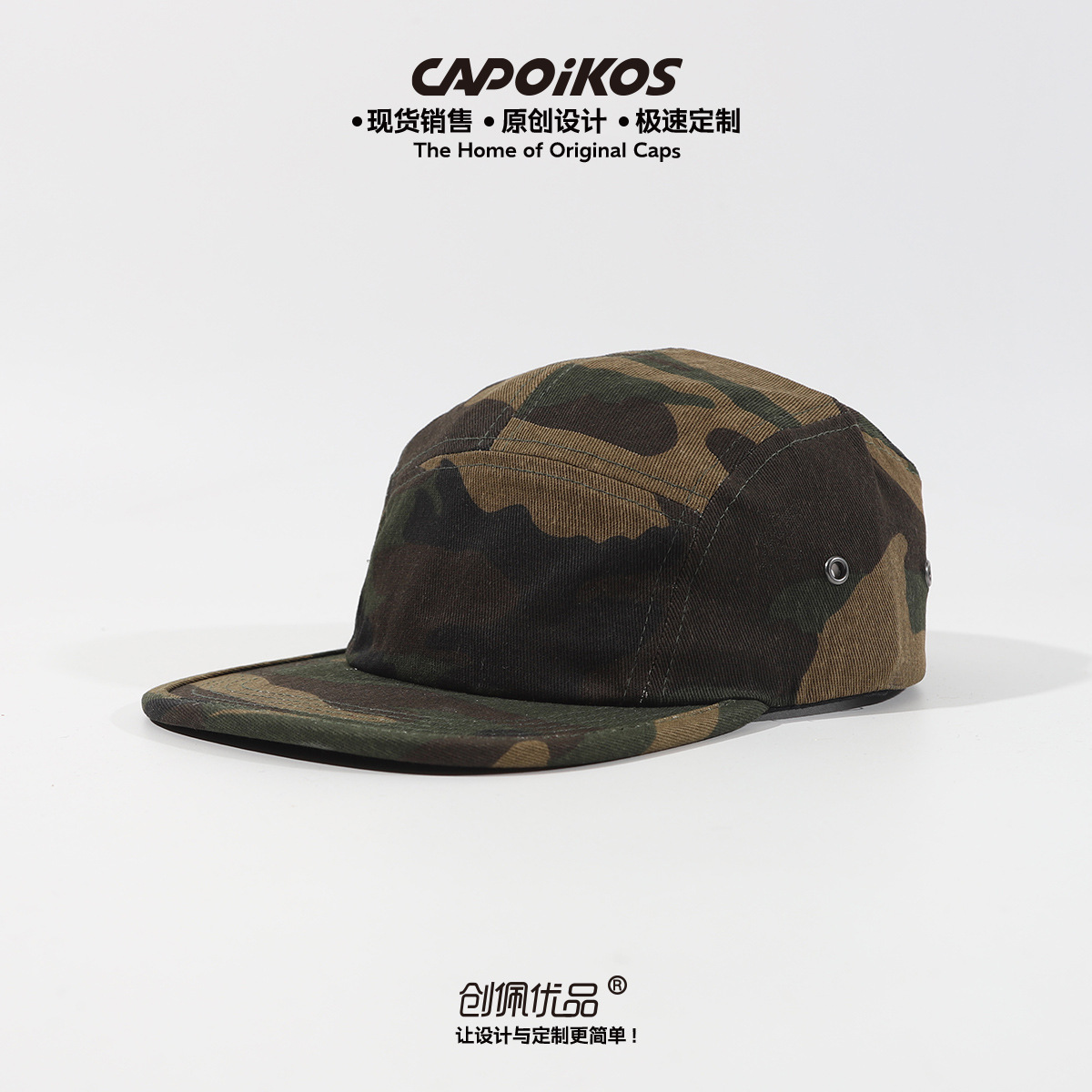 帽子男外贸跨境平檐迷彩露营帽可定制刺绣皮标logo棒球帽批发