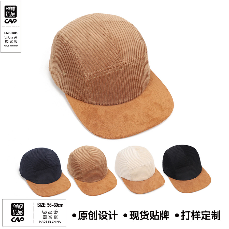 帽子男跨境现货刺绣logo拼色灯芯绒五片帽欧美潮酷露营帽twotones