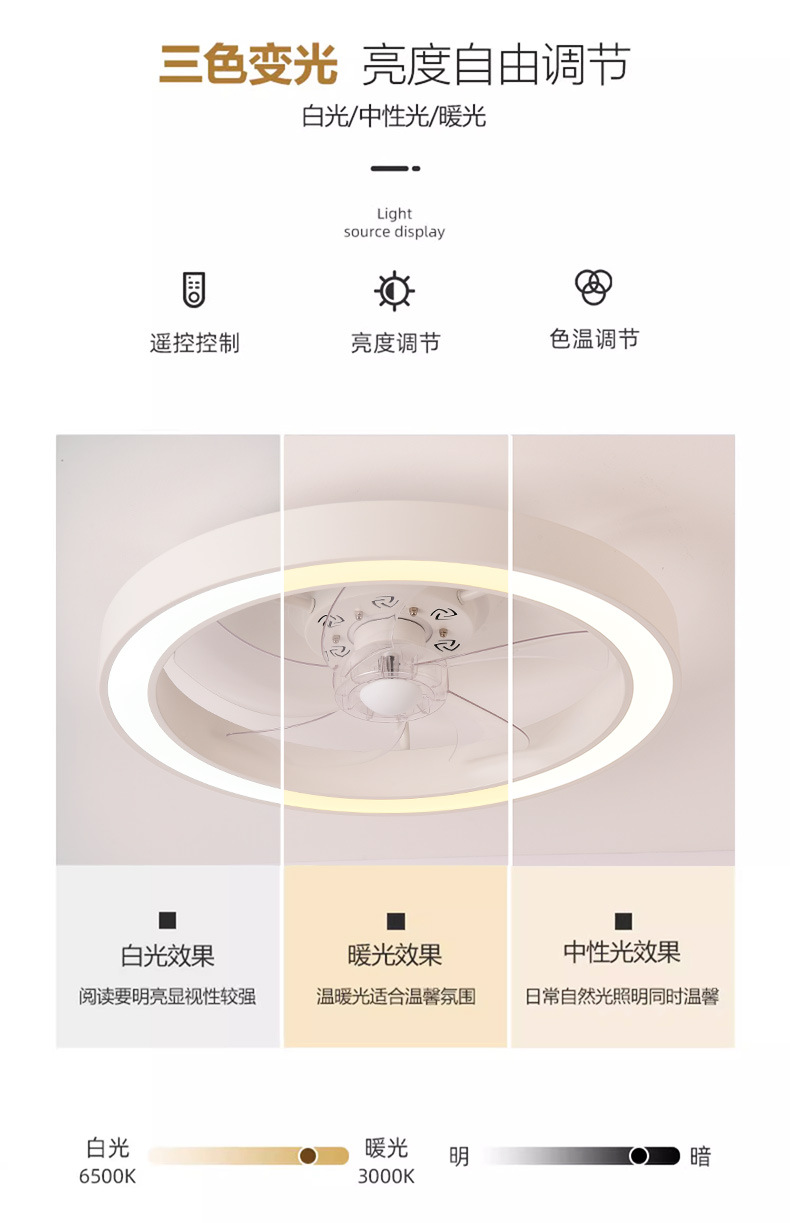 跨境专供超薄吊扇灯卧室吸顶餐厅隐形电风扇灯极简客厅2024年新款