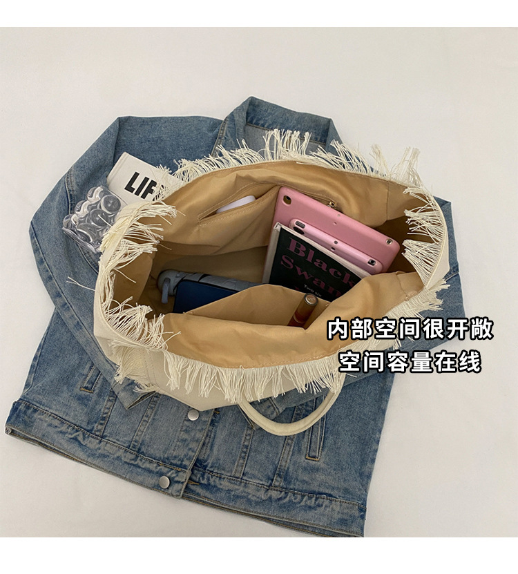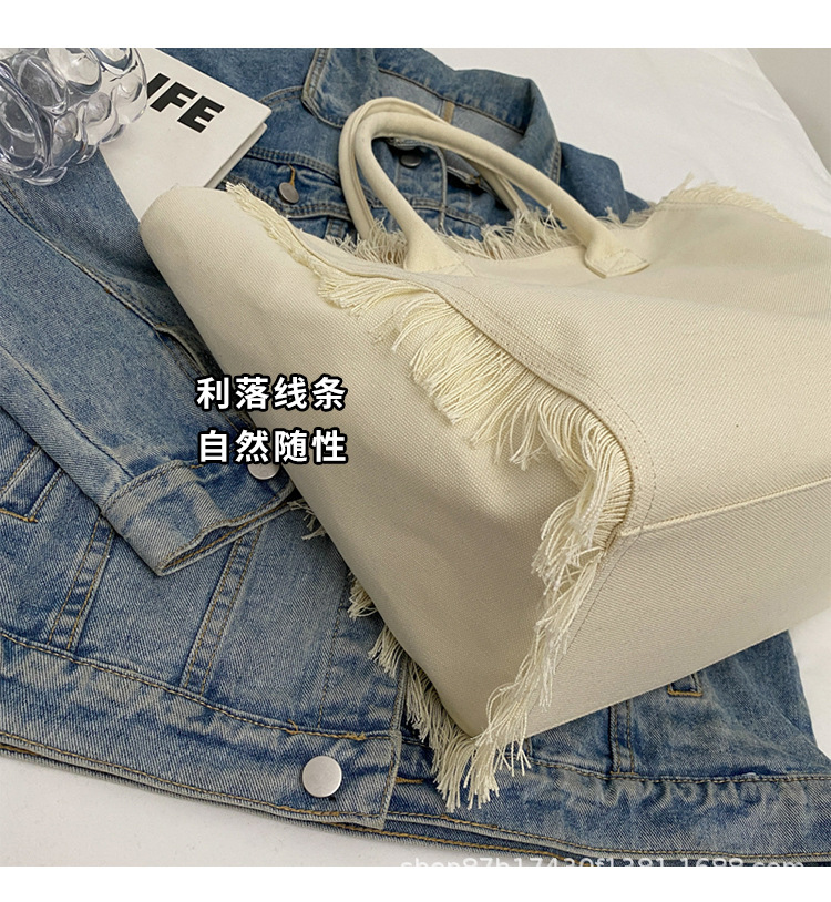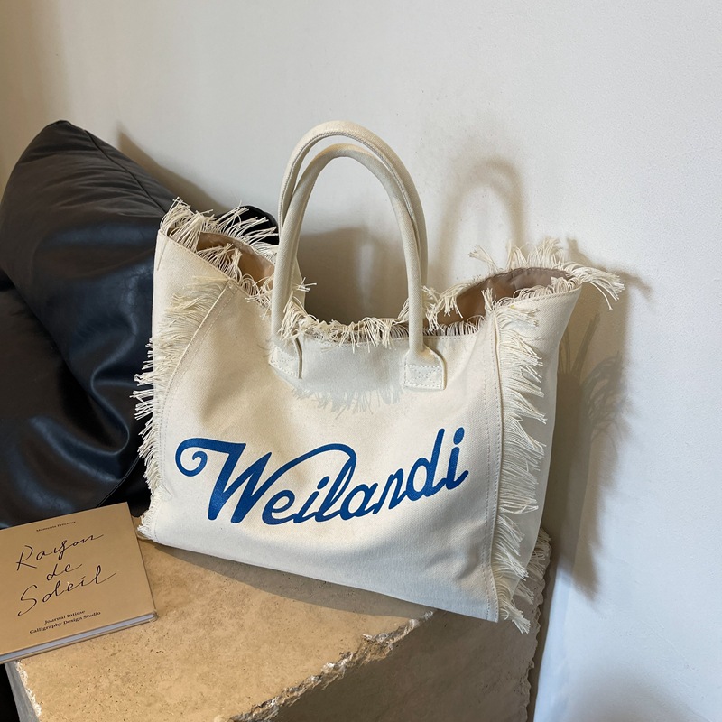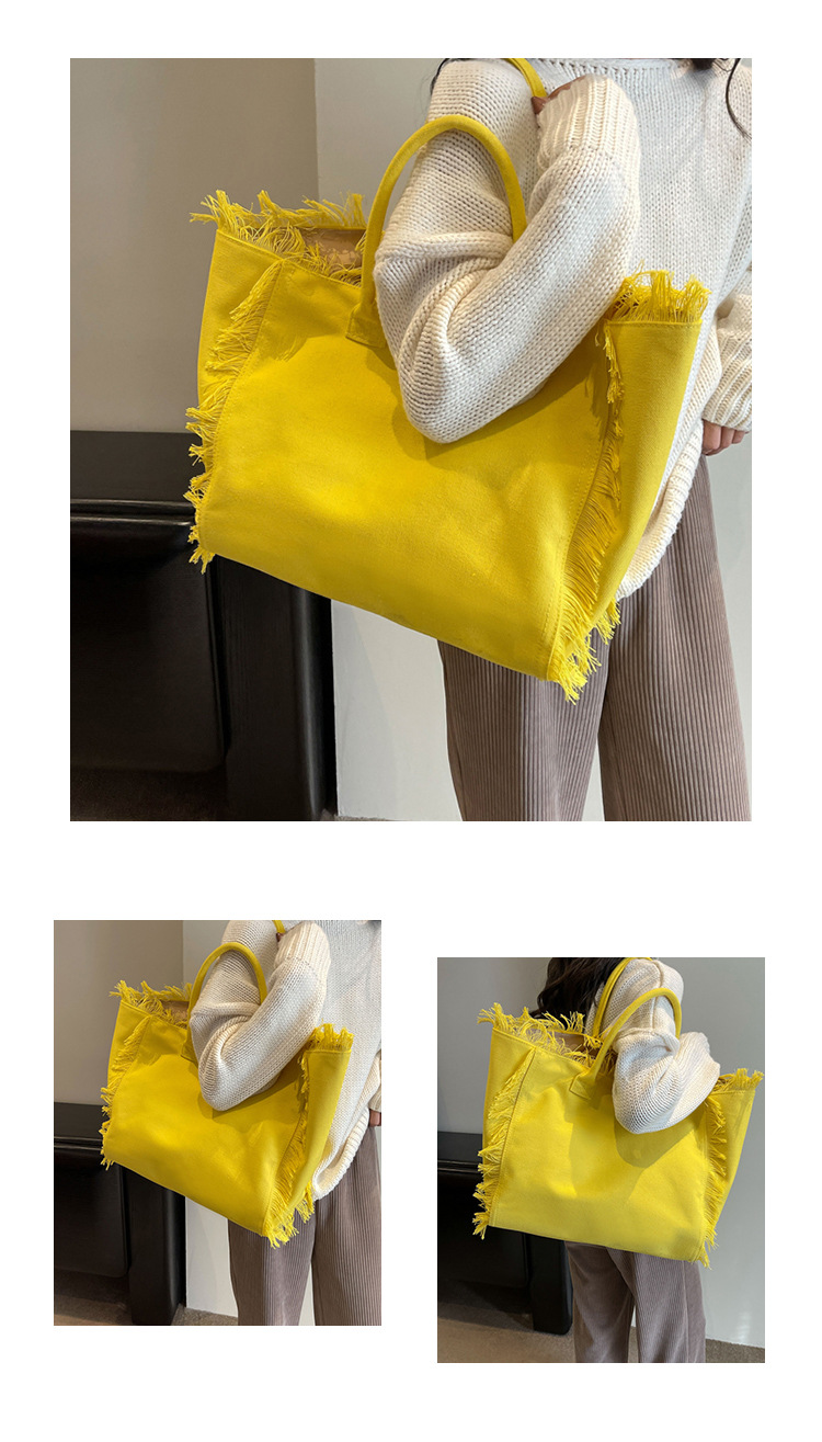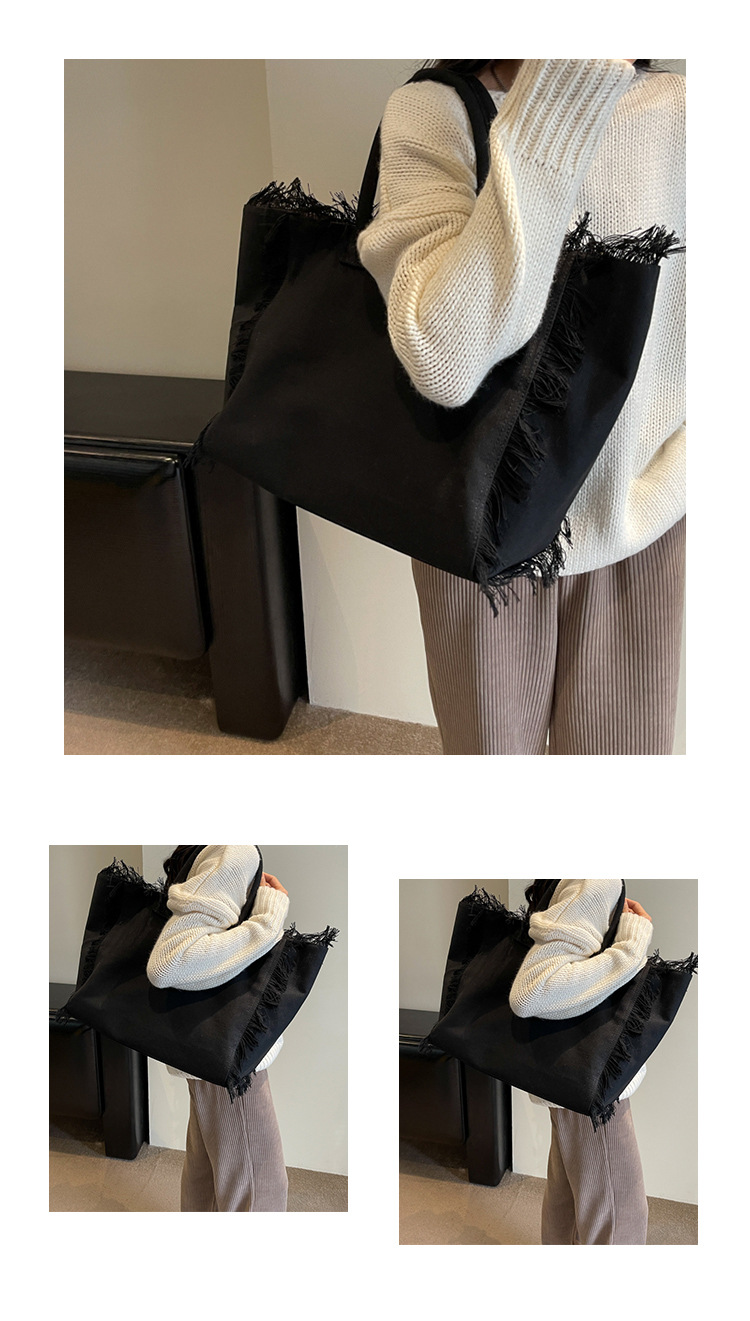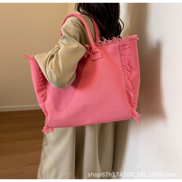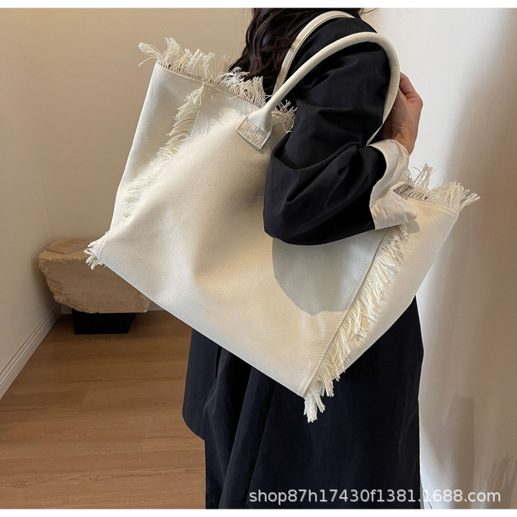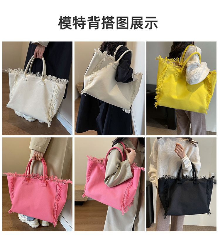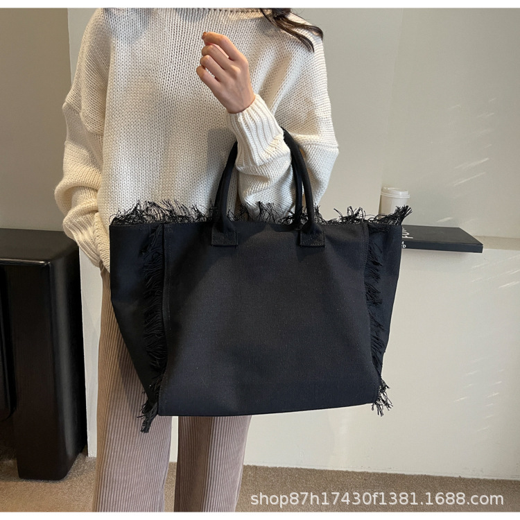 跨境外贸字母流苏帆布包大容量包包女2025新款纯色通勤单肩托特包
