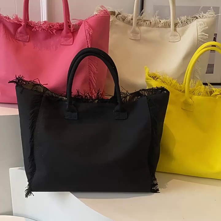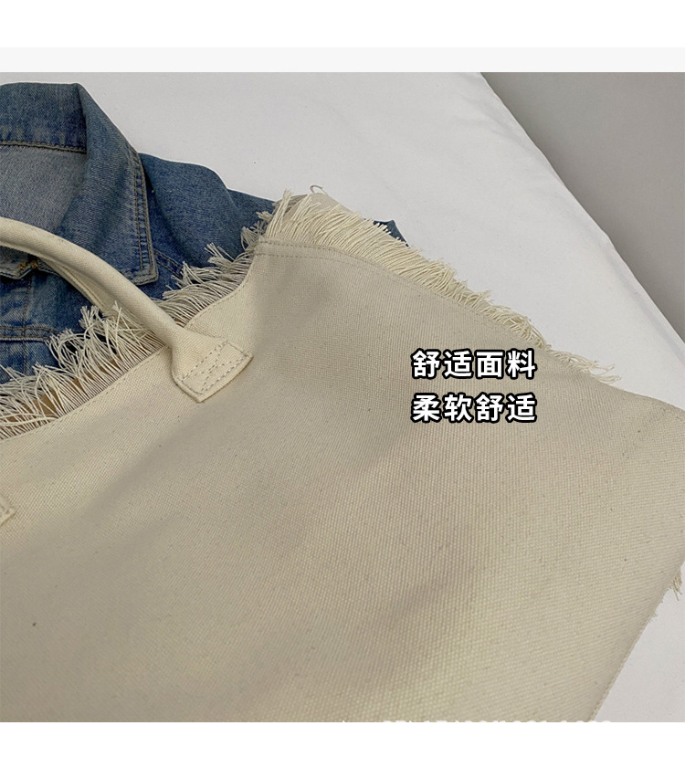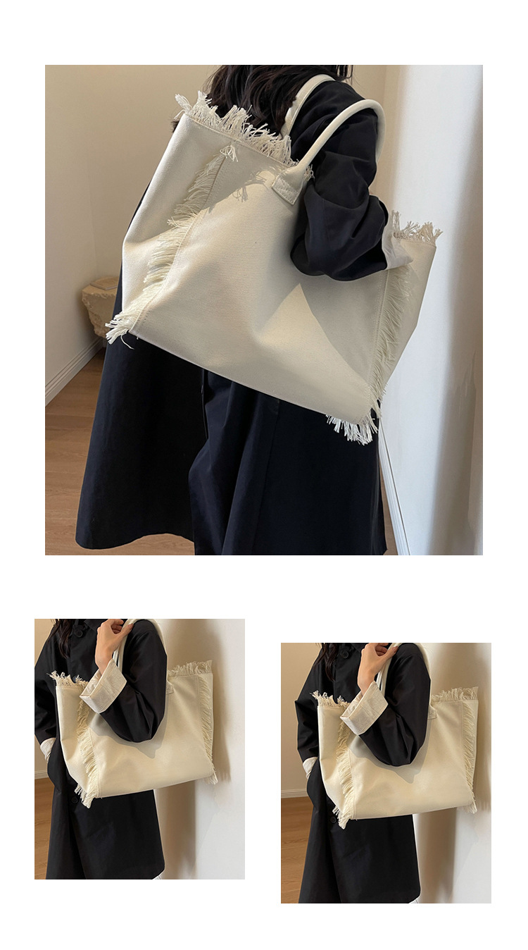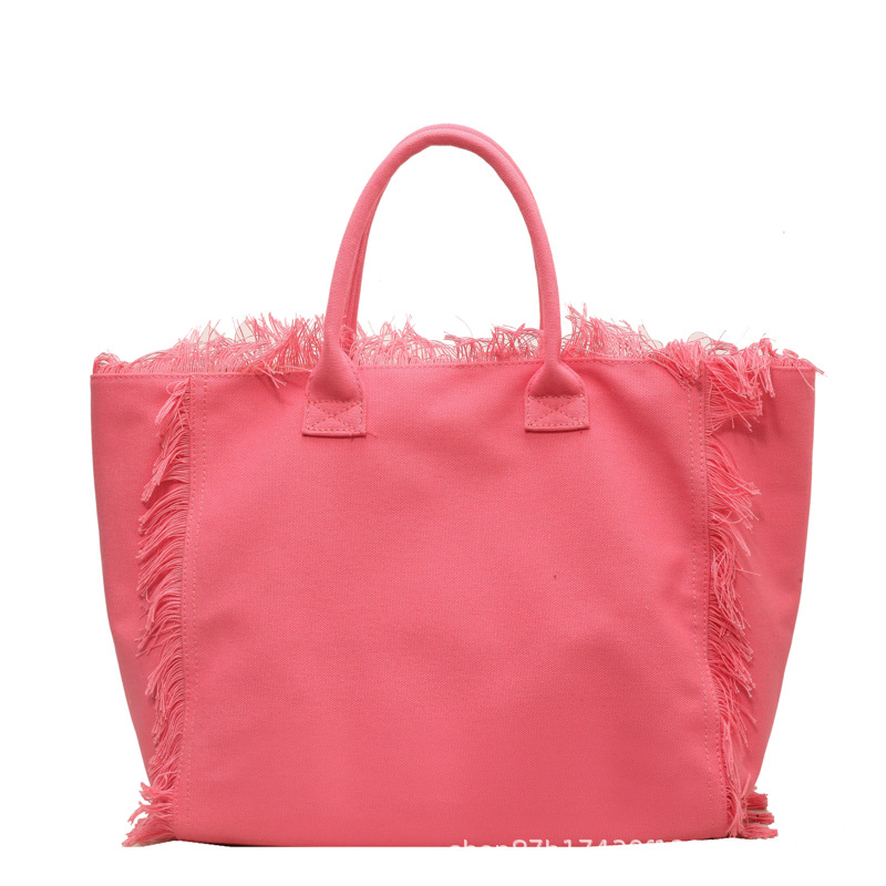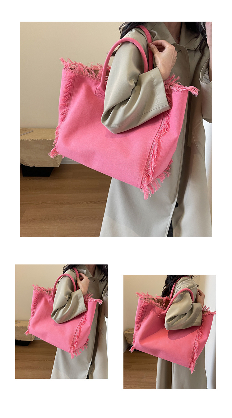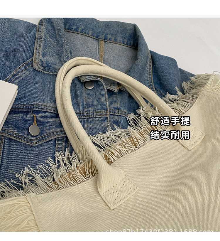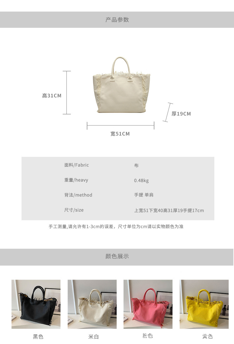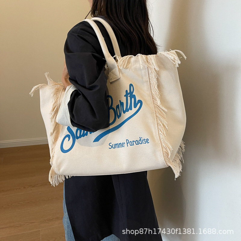 跨境外贸字母流苏帆布包大容量包包女2025新款纯色通勤单肩托特包