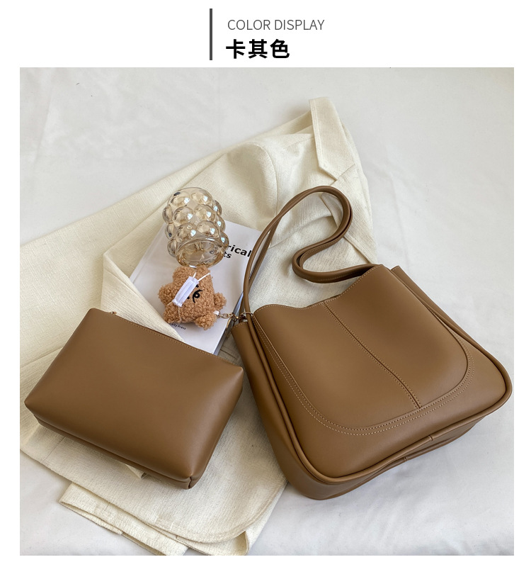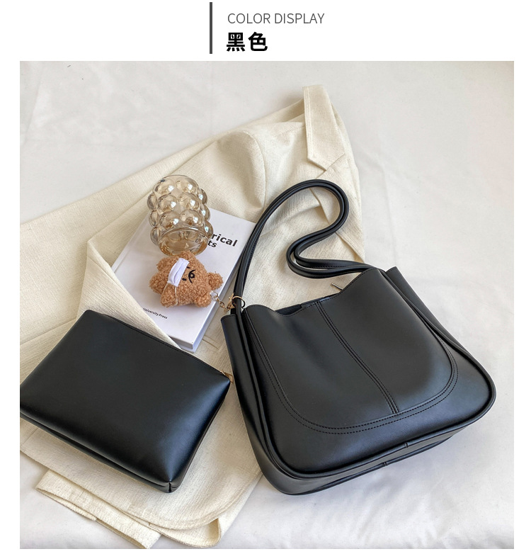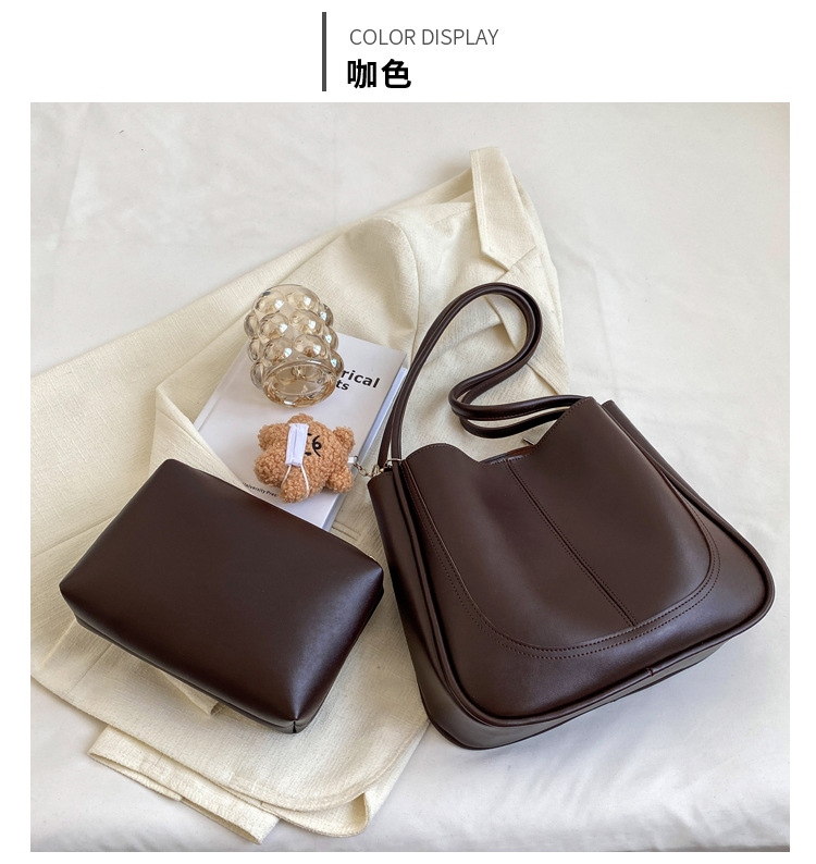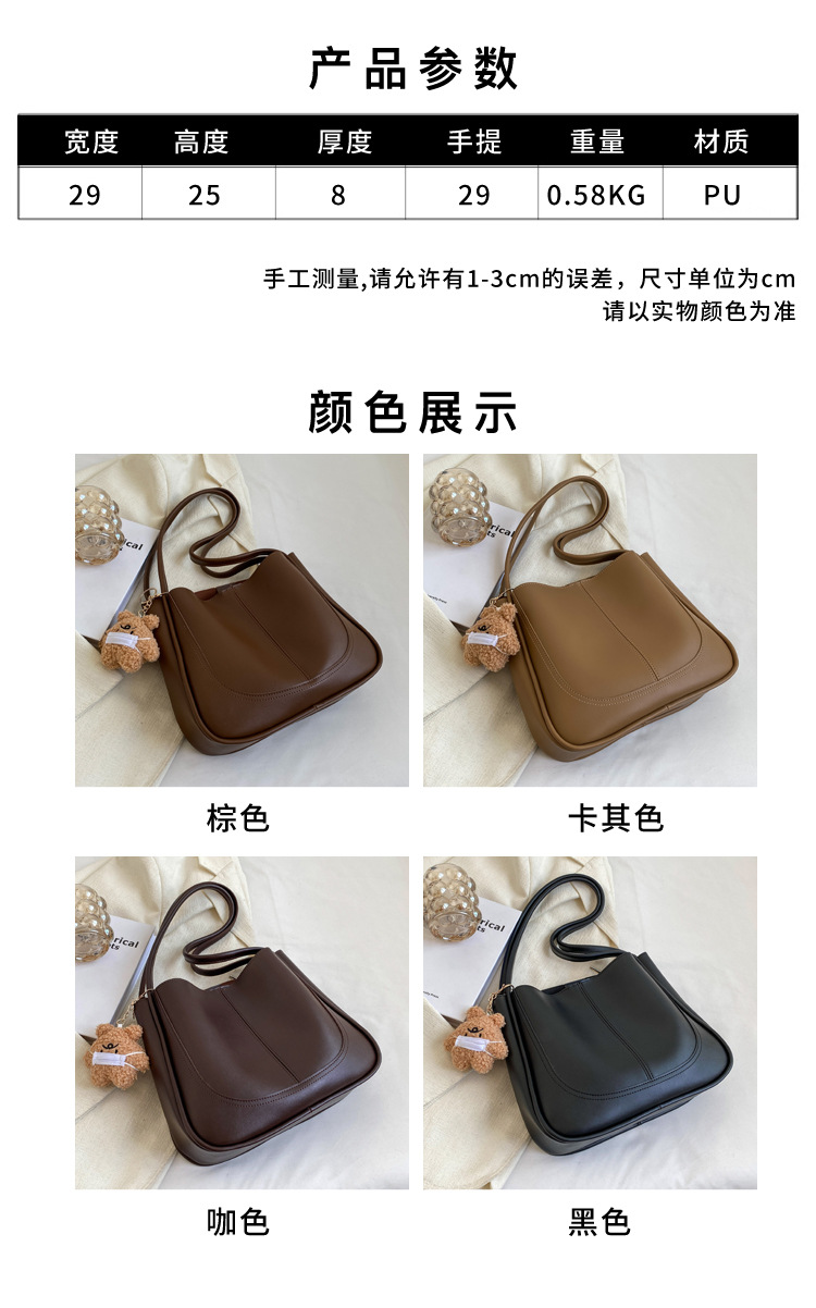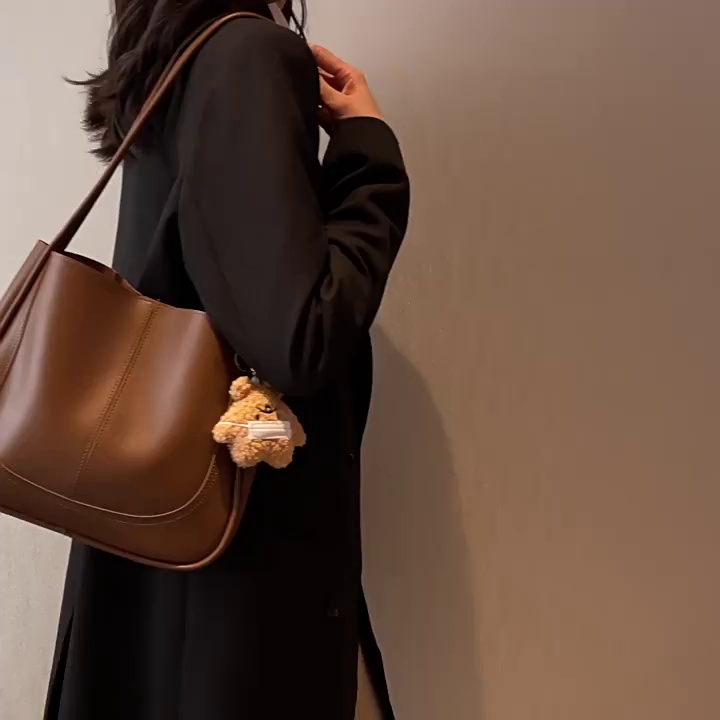 时尚质感水桶包包女202新款简约大容量复古单肩腋下包通勤托特包