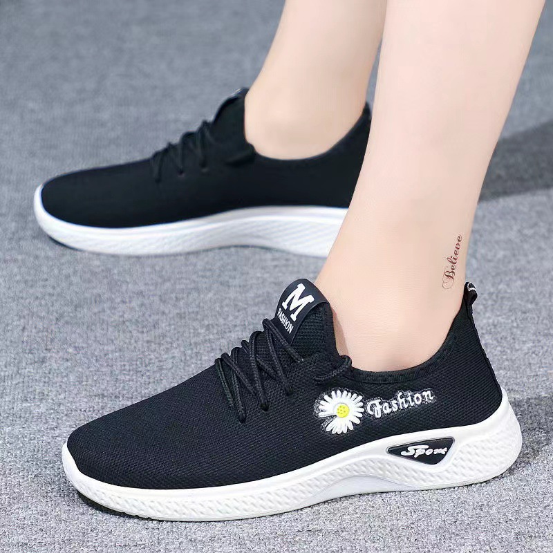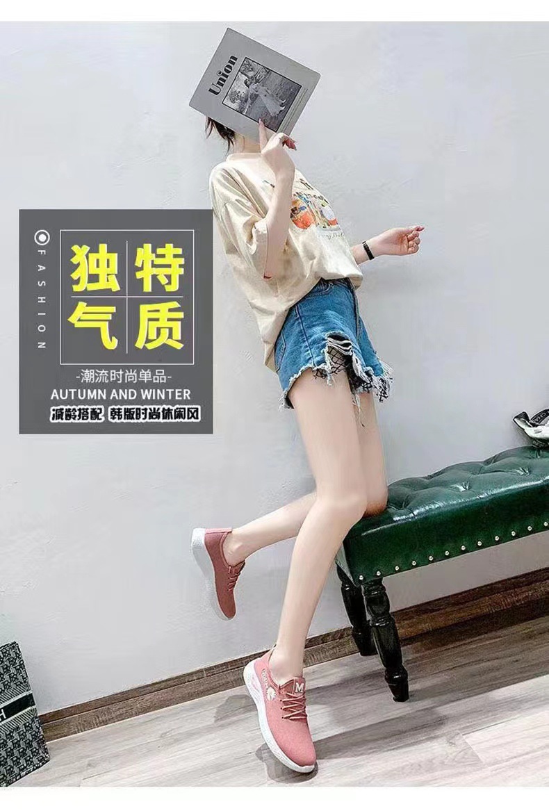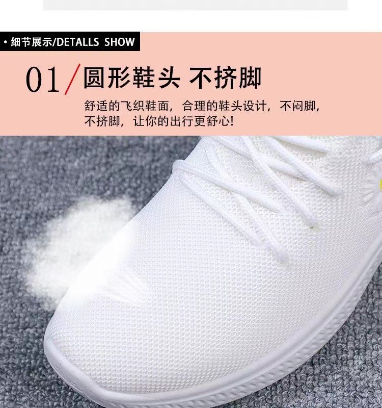 小白鞋女休闲一脚蹬透气跑步鞋飞织休闲软底广场舞妈妈鞋