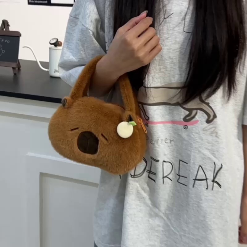 卡皮巴拉水豚毛绒可爱包包儿童手提包斜挎包公仔包